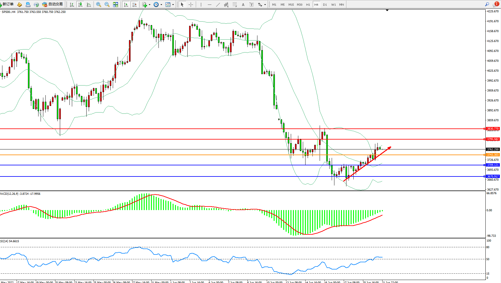 标普500指数6月21日(周二)收盘上涨90.01点,涨幅2.45%,报3764.85点;借贷成本的上涨,以及经济增长预期的弱化,也损害了风险较高的资产,提振了例如美元等相对安全资产的吸引力。
