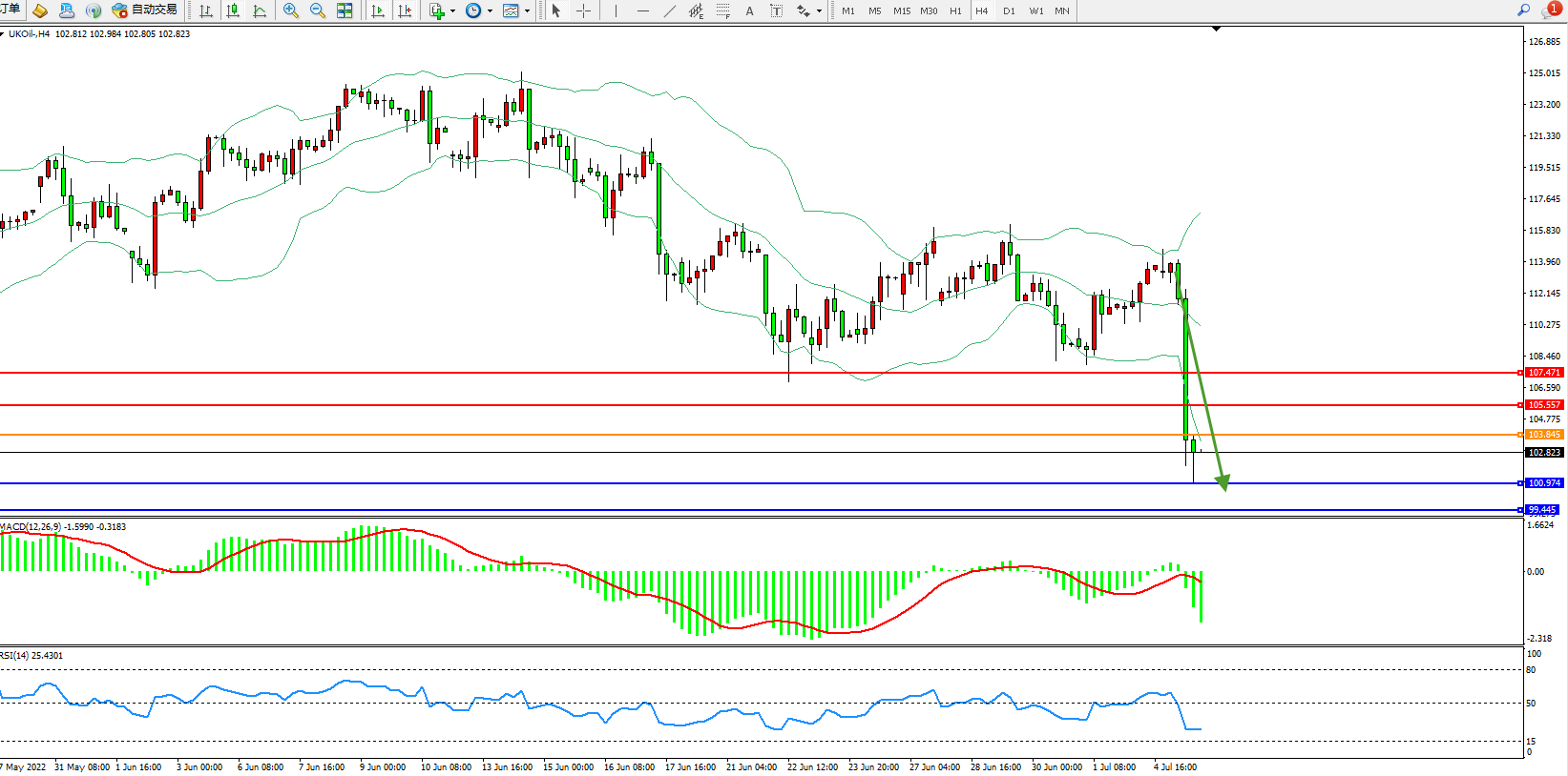 布油UKOil——4小时K线图显示: