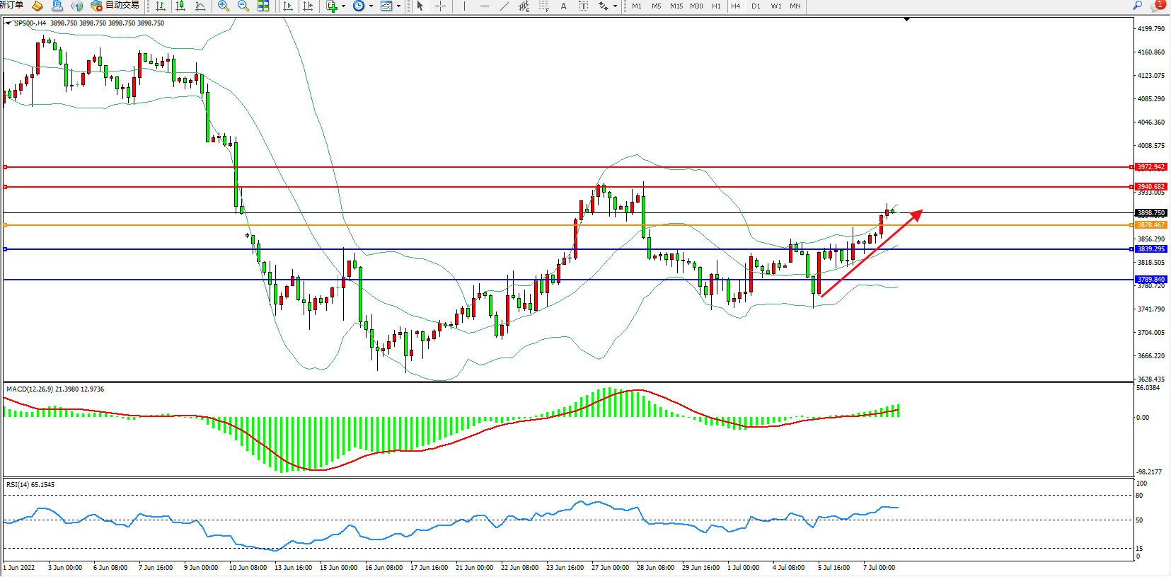 标普500指数7月7日(周四)收盘上涨56.72点,涨幅1.48%,报3901.80点;美国商务部公布的经修正后的数据显示,今年第一季度美国GDP按年率萎缩1.6%。从传统的衰退定义来讲,若连续两个季度萎缩则将意味着经济陷入技术性衰退。