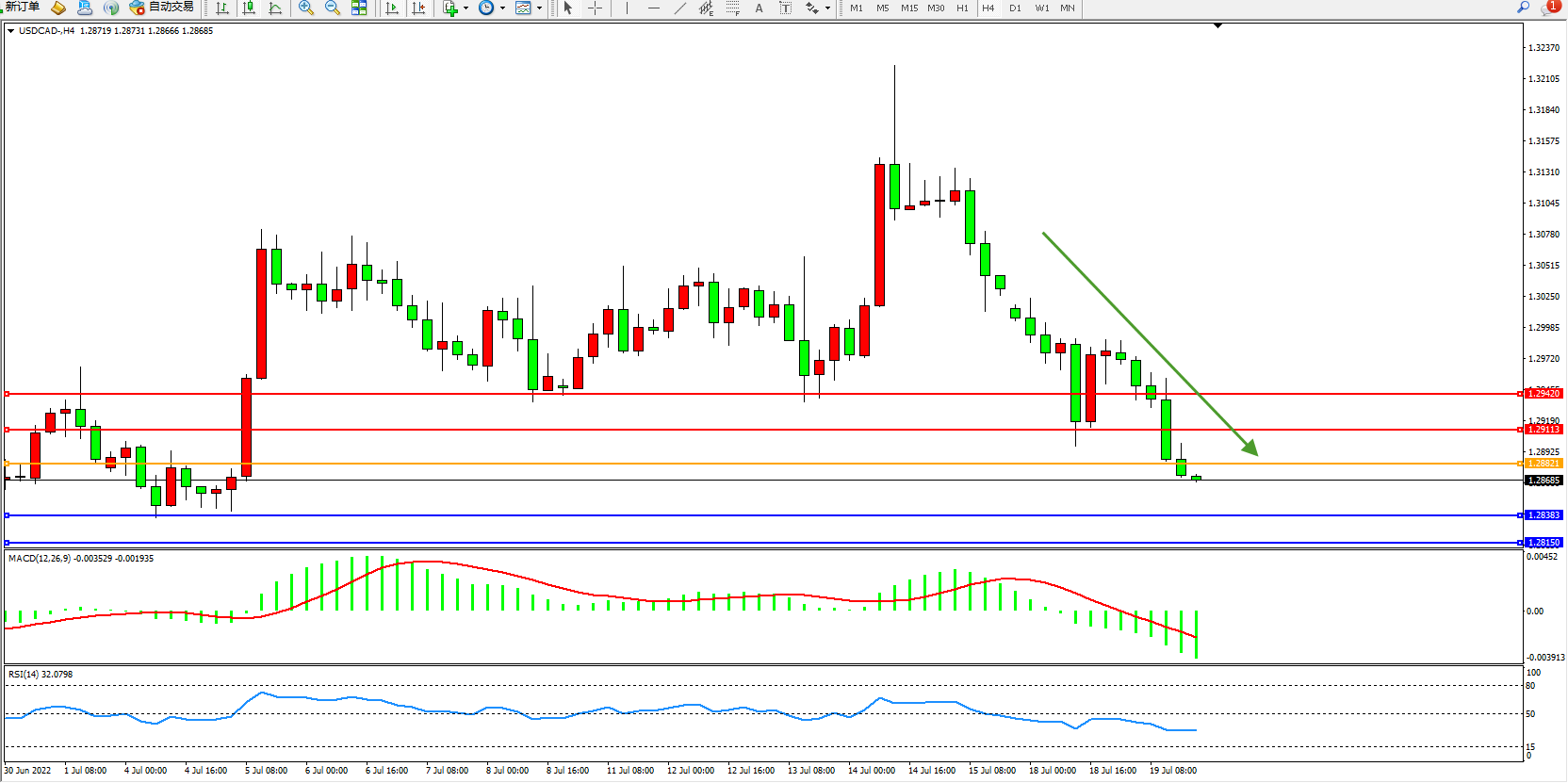 交易策略:1.28821下方看跌,目标1.28383、1.28150
