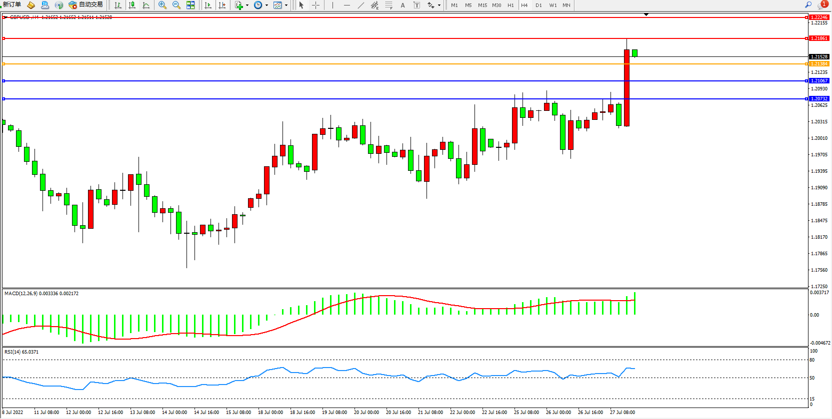 交易策略:1.21384上方看涨,目标1.21861、1.22246