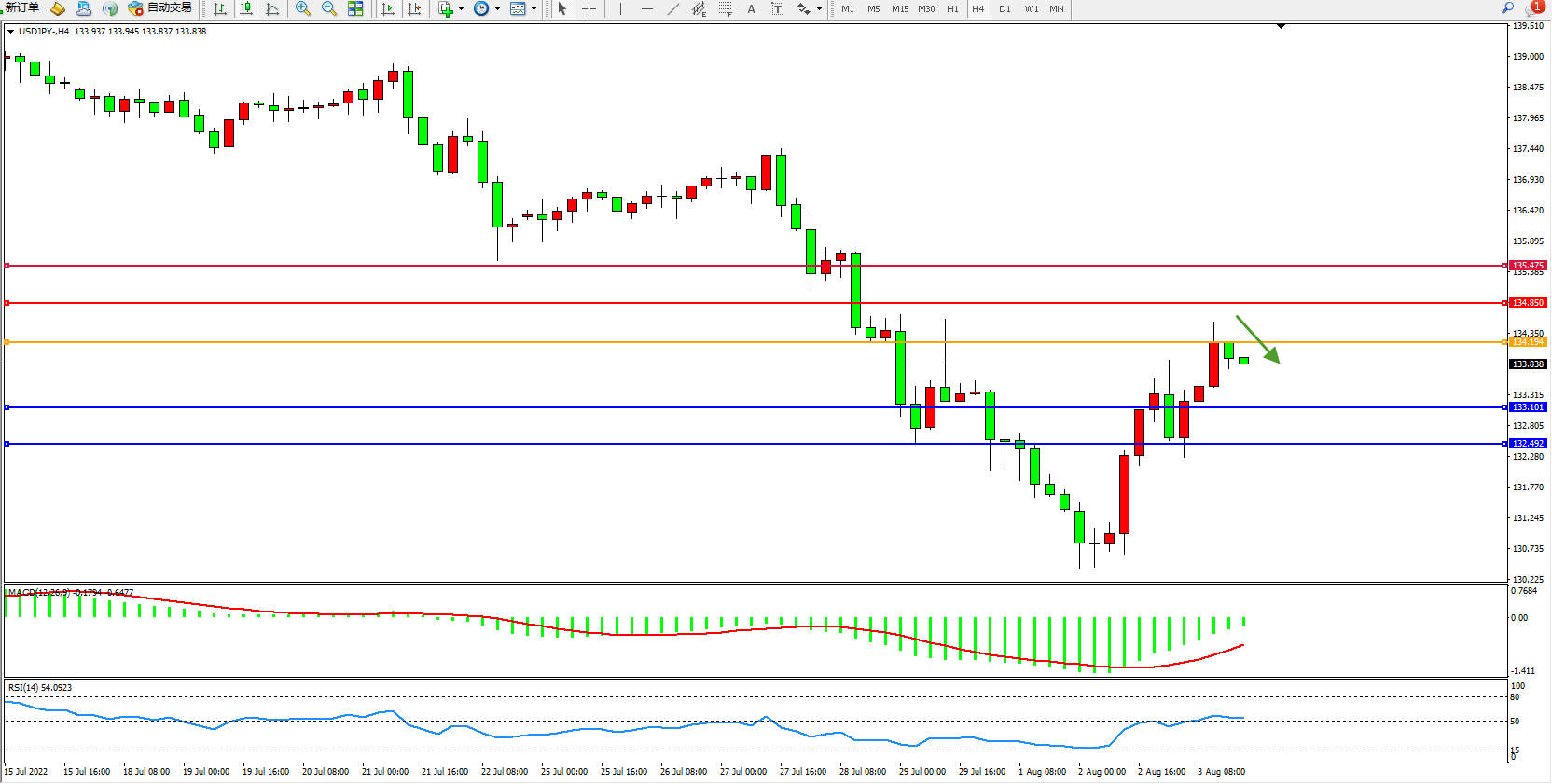4小时图看:低位多头动力强势震荡拉升上移,短期高位遇阻回撤,空头动力伺机入场,MACD指标处于空头区域维持整理缓慢上移,RSI指标处于50均衡线上側弱势徘徊;
