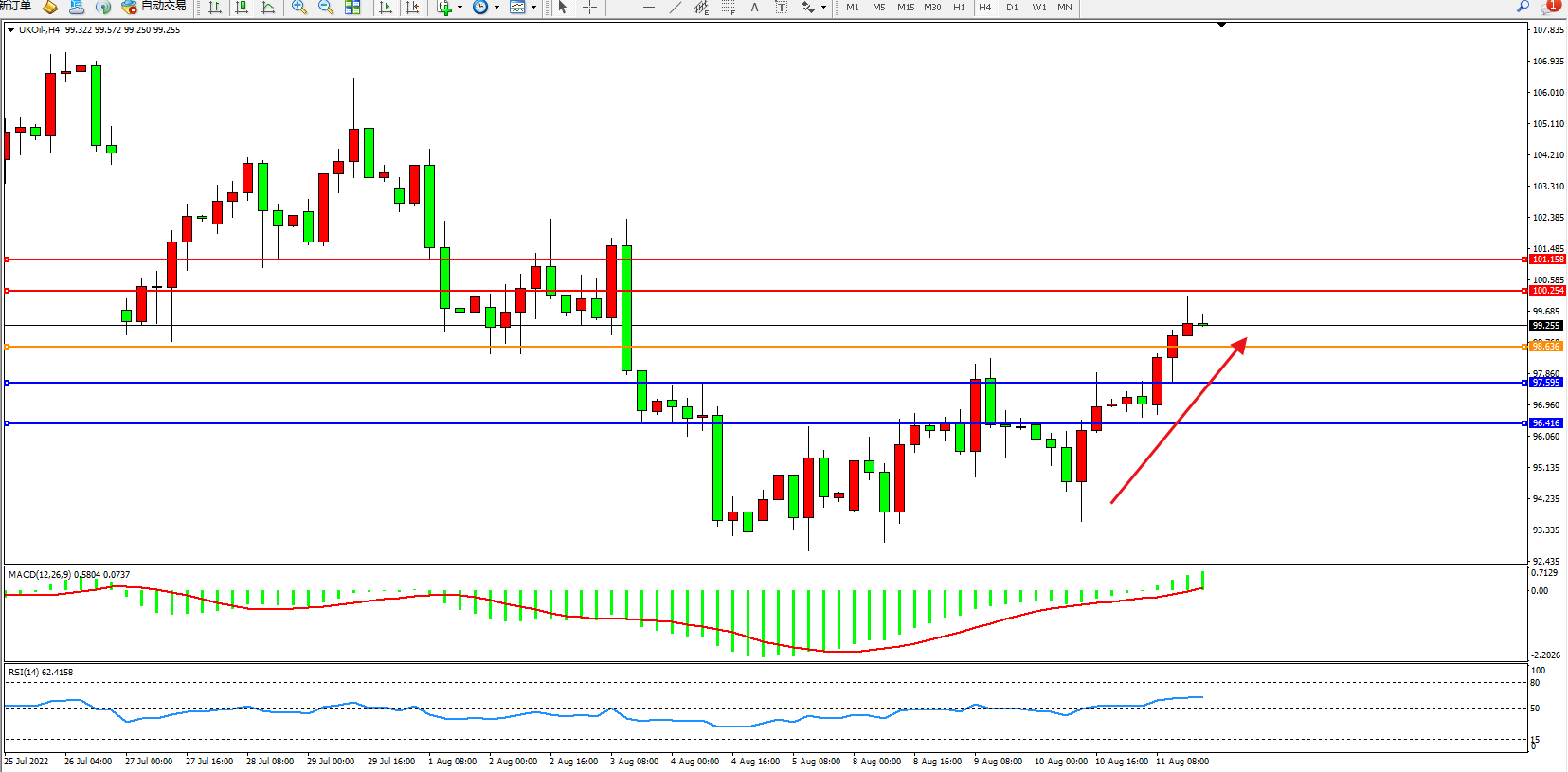 4小时图看:低位短期整理后,多头动力开始缓慢震荡上扬,市场多头涌入,MACD指标处于0轴线上側缓慢上移,RSI指标处于50均衡线上側 维持整理;