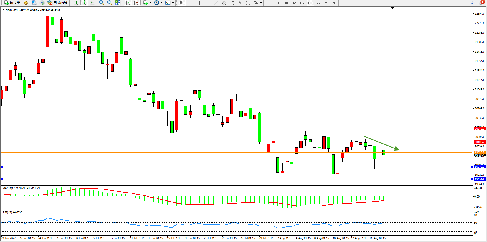 香港恒生指数8月17日(周三)收盘上涨91.93点,涨幅0.46%,报19922.45点;港股反弹,三大指数全天维持震荡行情,恒指涨0.46%盘中一度收复2万点,但尾盘再度弱势,今日南下资金净流出8.07亿港元,大市成交额为841亿港元。大型科技股涨多跌少,辟谣腾讯拟减持,昨日大跌的美团反弹逾3%,网易、京东、阿里巴巴小幅上涨,日前有外媒消息指腾讯(0700.HK)计划剥离于美团-W(3690.HK)的17%持股,以8月16日美团收市价计,腾讯所持股份价值约1,768亿港元。消息传出当日美团股价下跌9%,腾讯股价上涨1%。