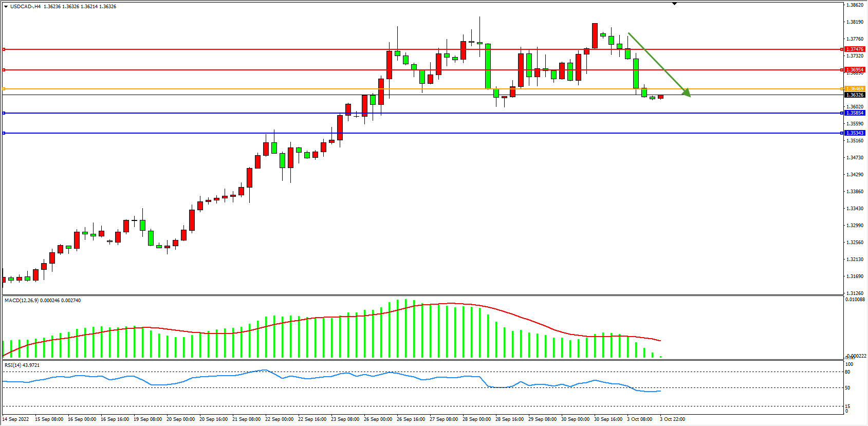 美元加元USDCAD——4小时K线图显示: