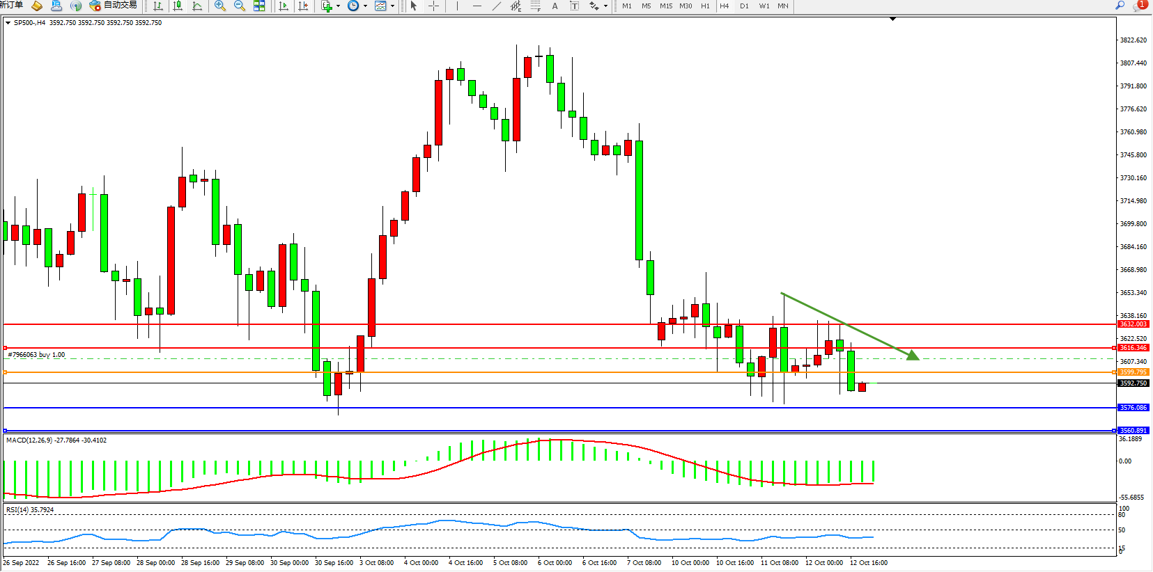 标普SP500——4小时K线图显示: