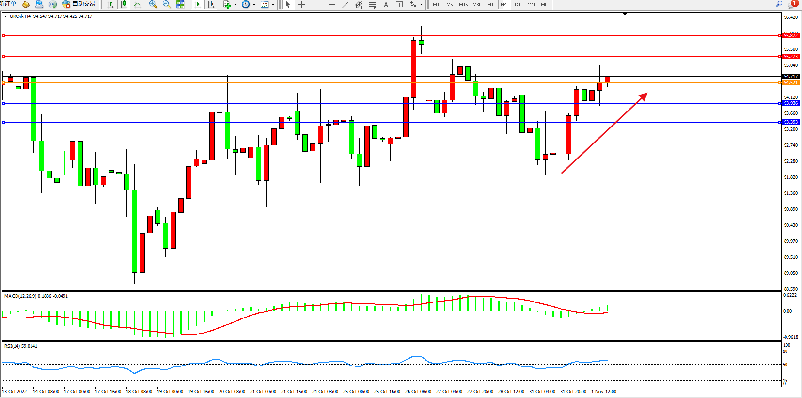 布油维持94.717附近震荡,市场对全球经济衰退的担忧仍存,拜登呼吁增加产量,市场对亚洲新冠疫情的担忧情绪也有所升温,仍需提防油价的震荡下行风险。