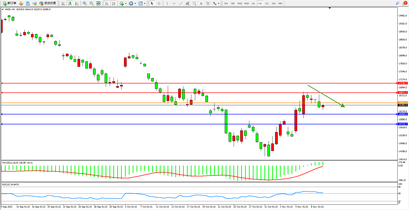 恒指HK50 4小时图