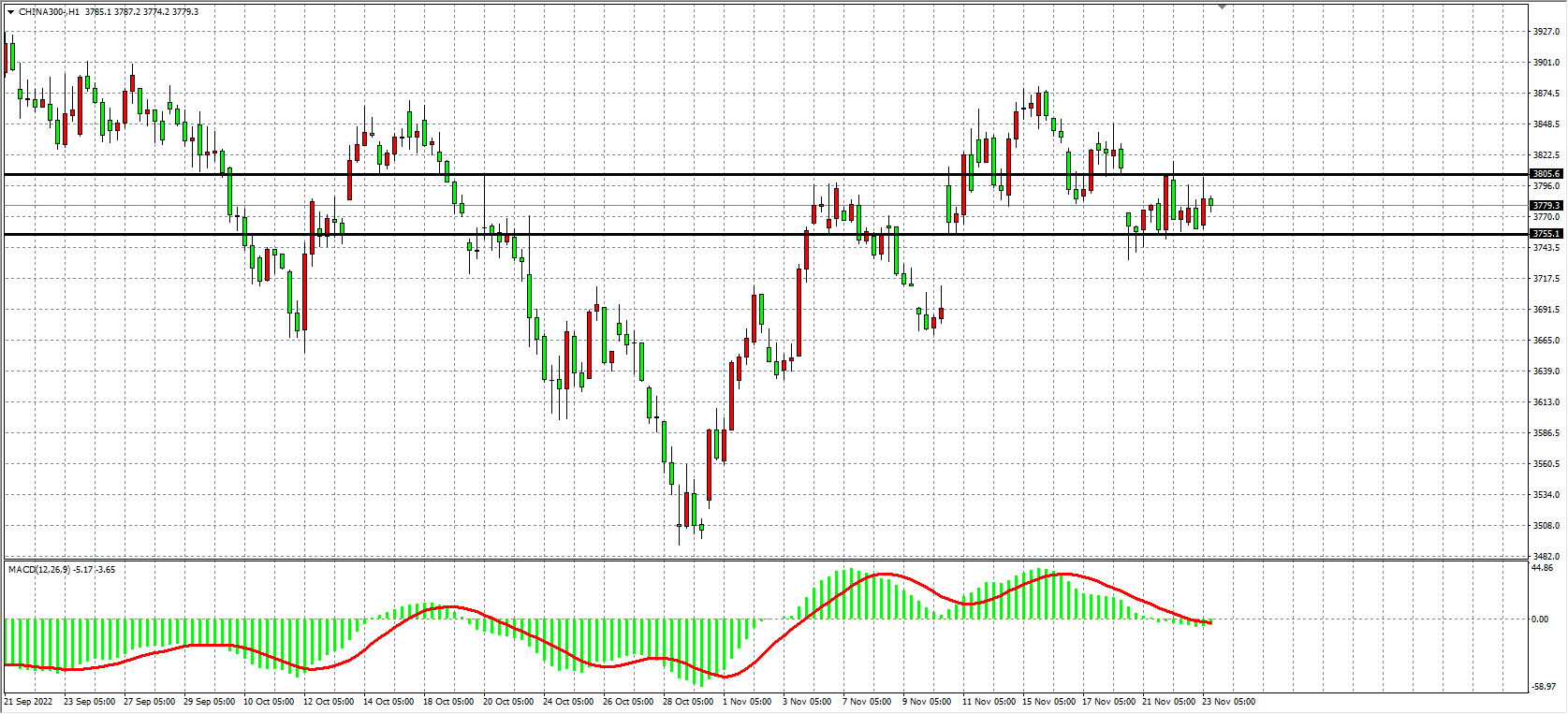 1小时图看,沪深300在回调3755后再度止跌,目前于3755-3800间形成盘整走势,MACD量能柱在零轴附近缩量,若上破3800目标上看3850-3900,跌破3755则下看3700-3600。