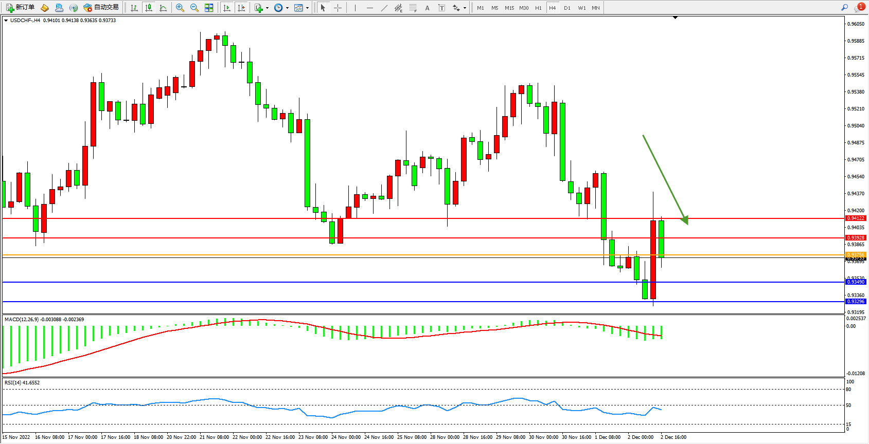 交易策略:0.93756下方看跌,目标0.93490、0.93296