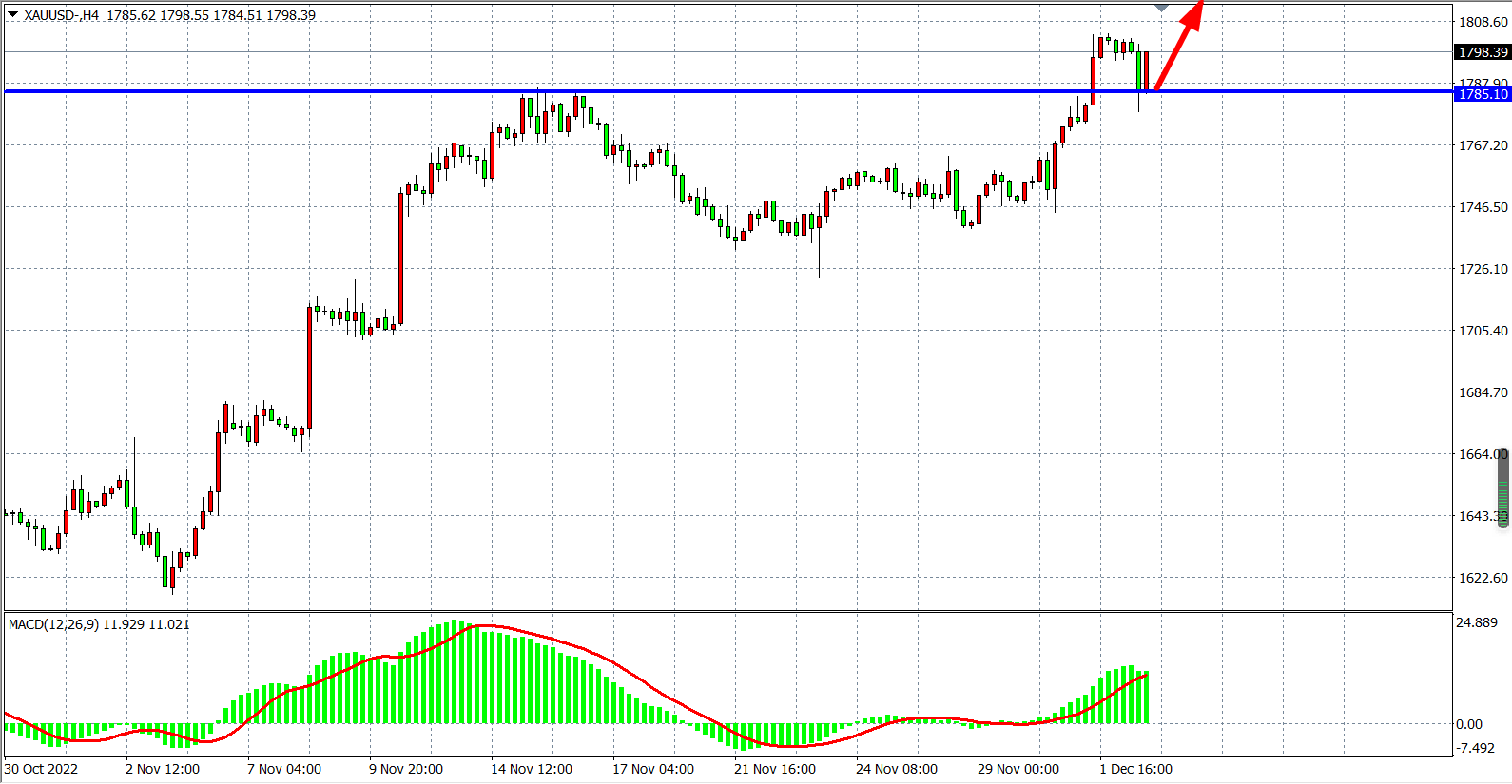 交易策略:在1785.00 之上看涨,目标1800.00         1820.00