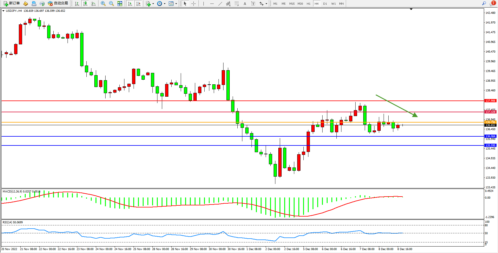 美元兑日圆维持136.652附近震荡,日本最新公布的贸易逆差超过预期达到150亿美元,出口同比增长25.3%低于9月份28.9%的同比增长。且日本第三季度实际GDP年化季环比终值降0.8%,但还是高出预期的-1.1%数值。