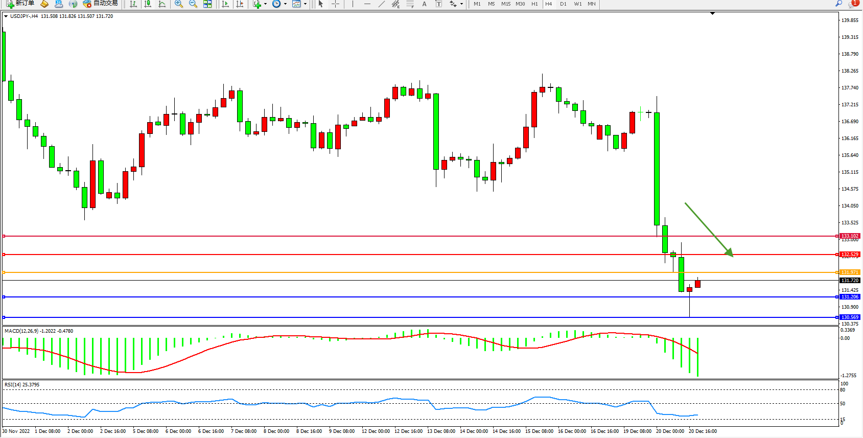 交易策略:131.971下方看跌,目标131.206、130.569