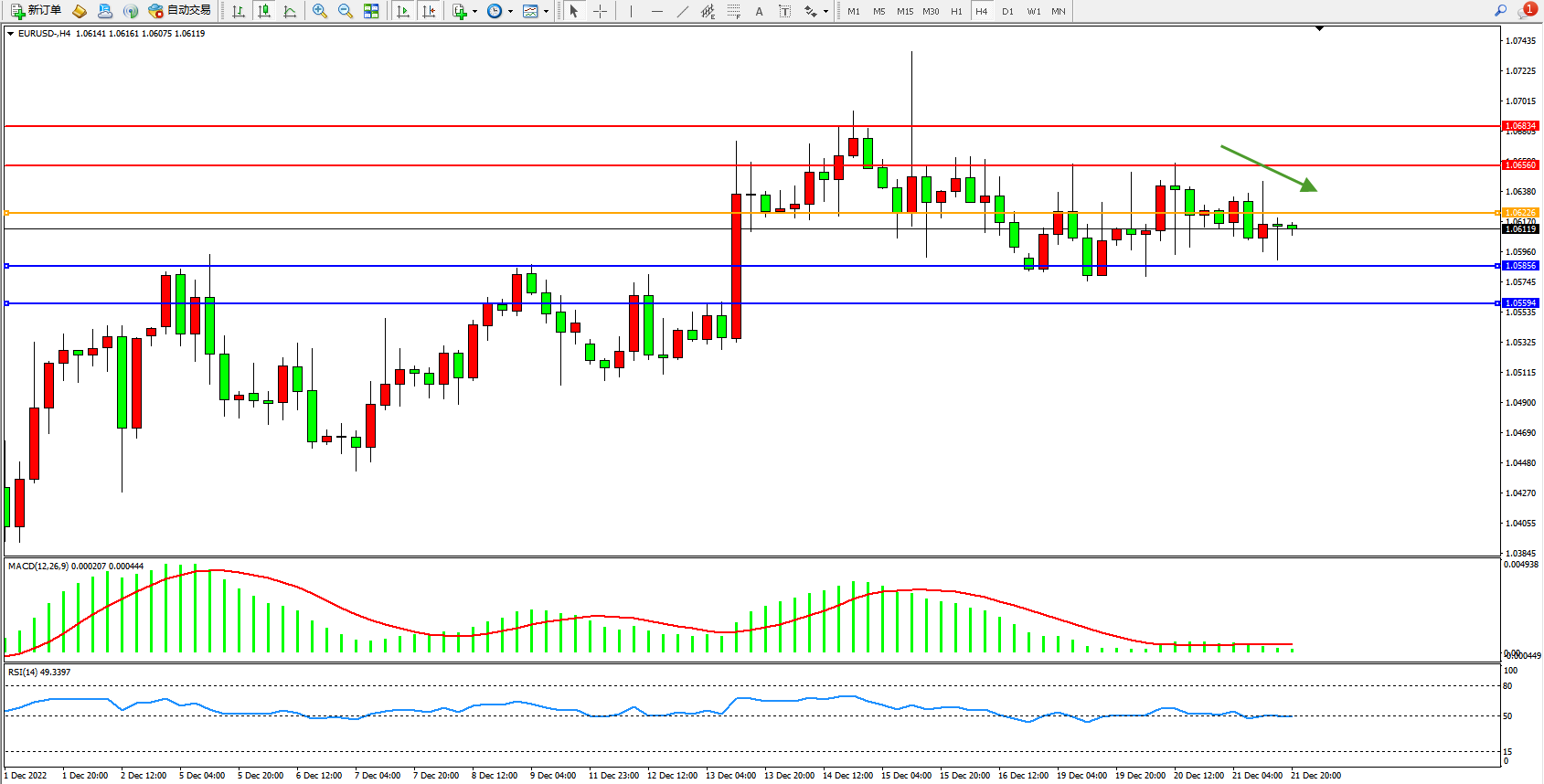 欧元兑美元维持1.06119附近震荡,欧洲央行在加息方面越来越鹰派的态度,成为支撑欧元的重要基石。由于西方圣诞长假在即且接近年末,汇市交投已开始变得不那么活跃。欧元兑美元近期连续多个交易日围绕着1.06上下二、三十个点子窄幅波动。