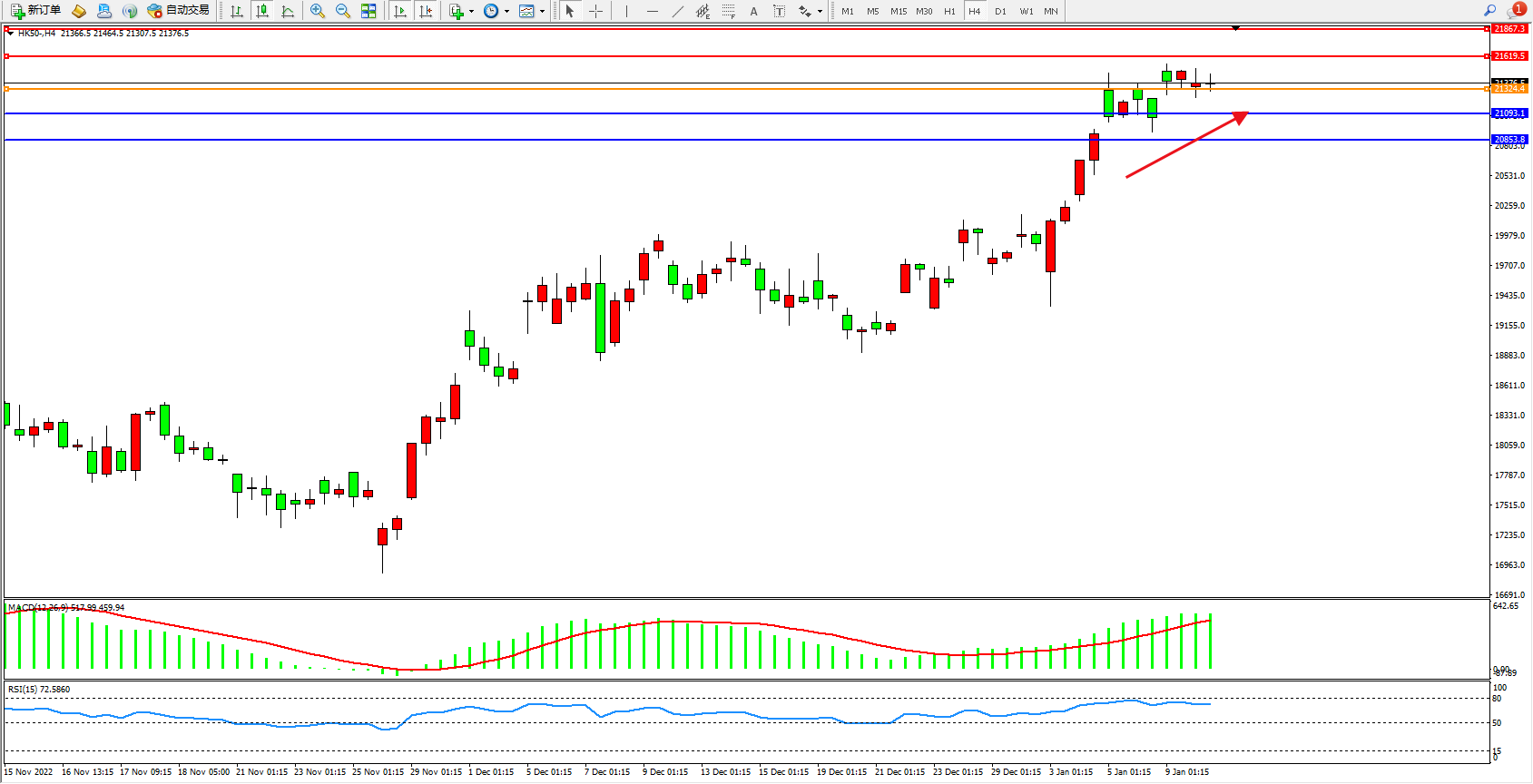 恒指HK50 4小时图