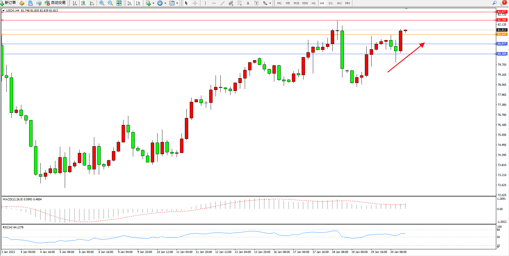 原油维持81.812附近震荡,主要受中国经济前景转好推动,这应该会提振世界第二大经济体的燃料需求。油价也受到美联储更快结束紧缩周期的预期支撑。