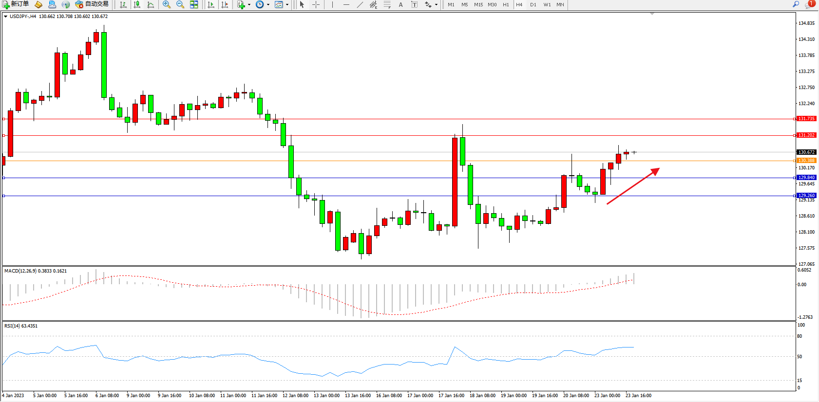 4小时图看:多头动力维持窄幅整理上行,市场看涨情绪笼罩,短期多头动力维持缓慢拉升中,MACD指标处于多头区域缓慢上移,RSI指标处于多头区域整理;