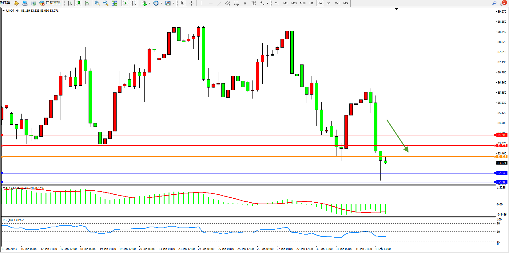 布油UKOil——4小时K线图显示: