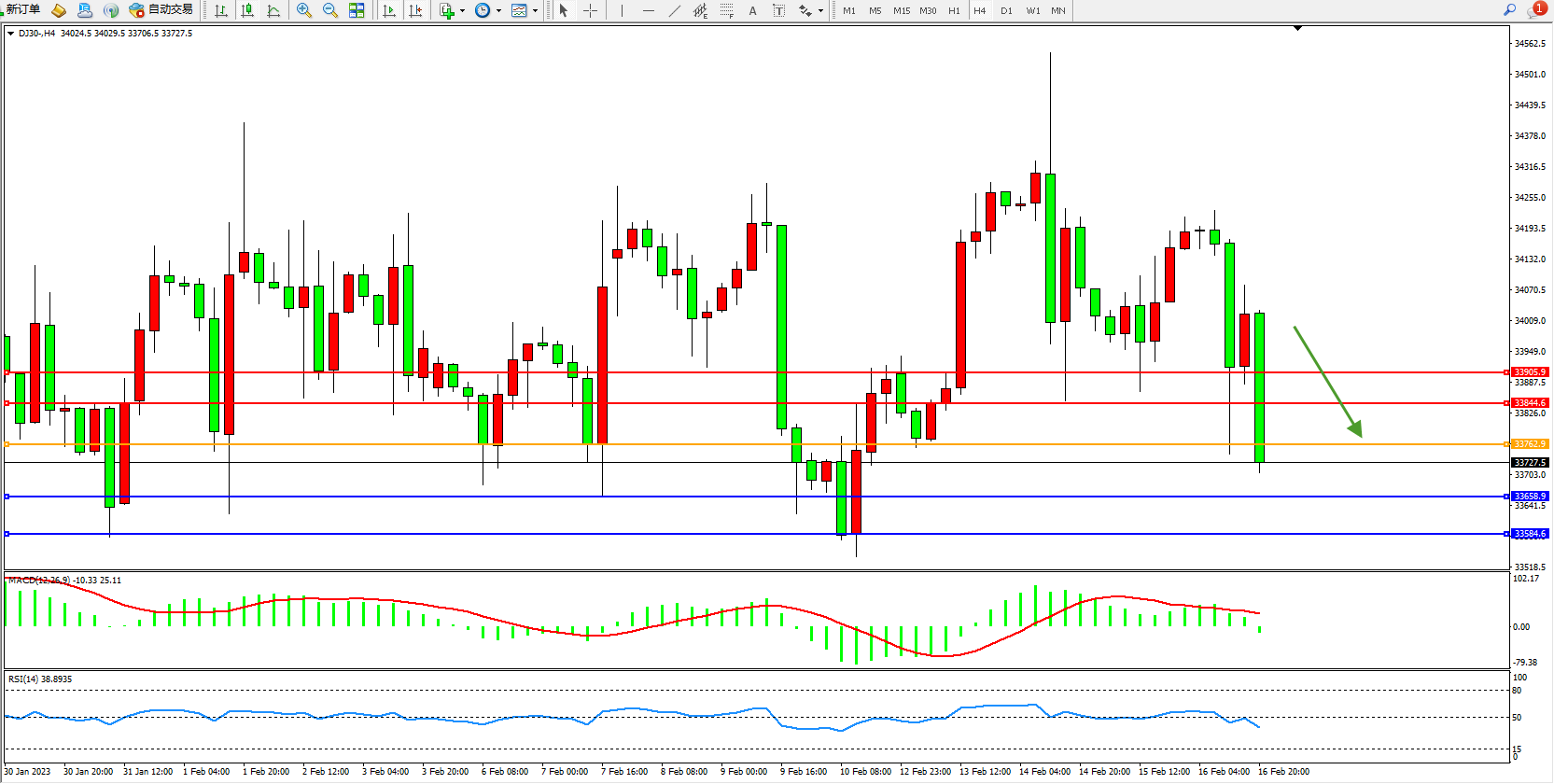 道琼斯指数2月16日(周四)收盘下跌431.66点,跌幅1.26%,报33696.39点;美国2月份制造业商业前景调查,该地区的制造业活动继续下降。总体活动指数进一步下降,新订单指数保持负值,发货量指数保持正值但处于低位。