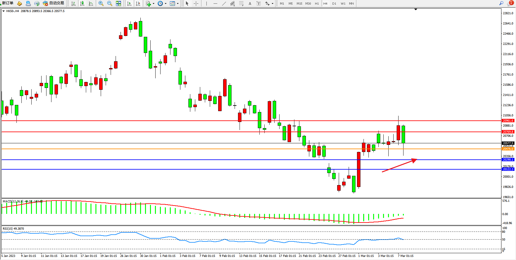 恒指HK50 4小时图