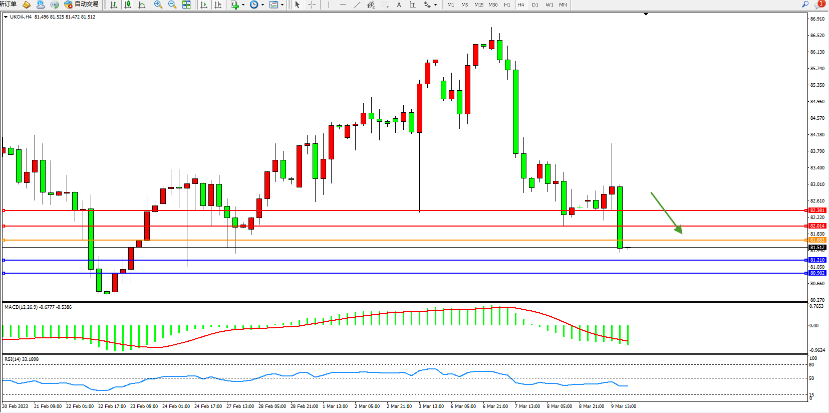 布油UKOil——4小时K线图显示: