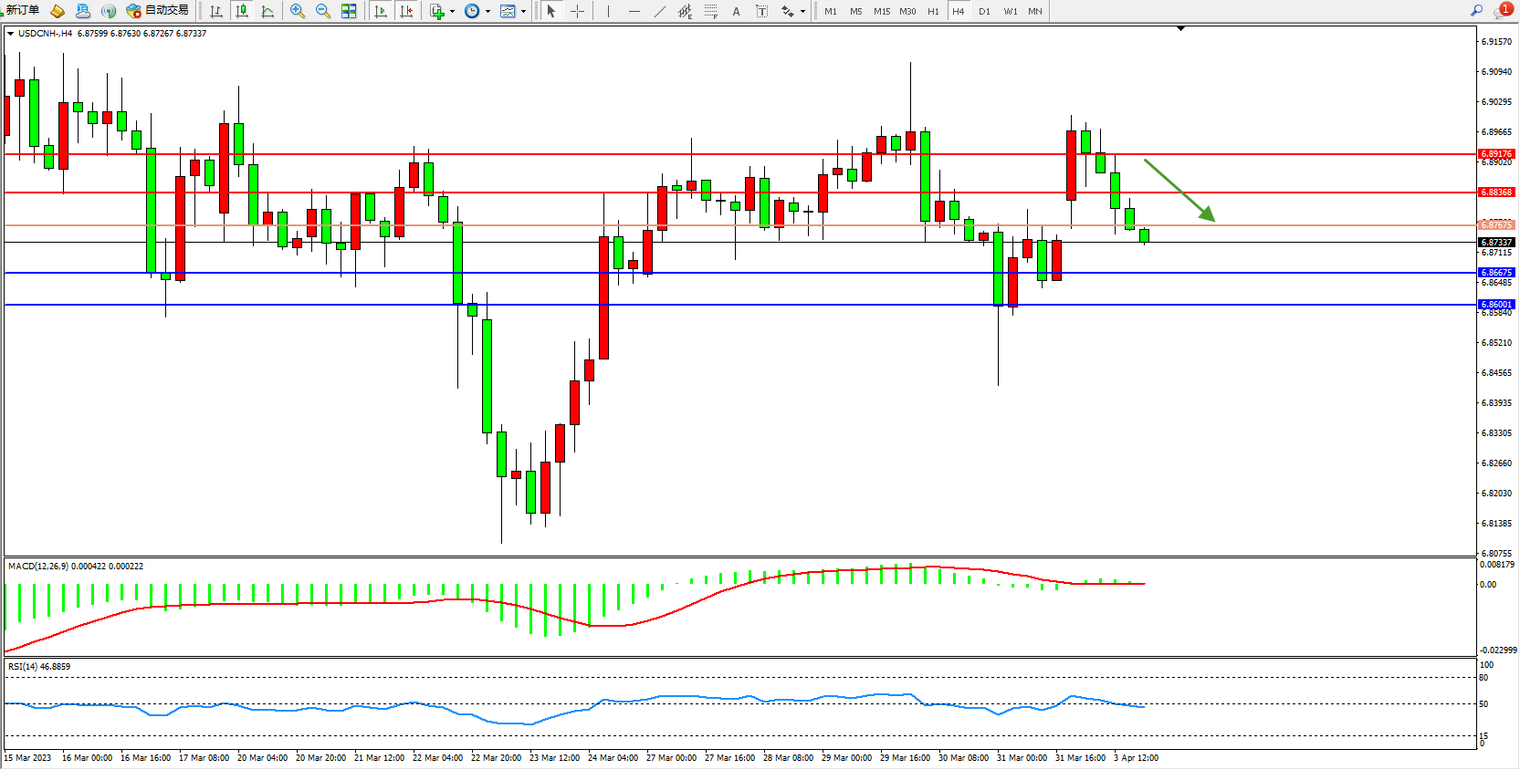备选策略:6.87675上方看涨,目标6.88368 6.89176