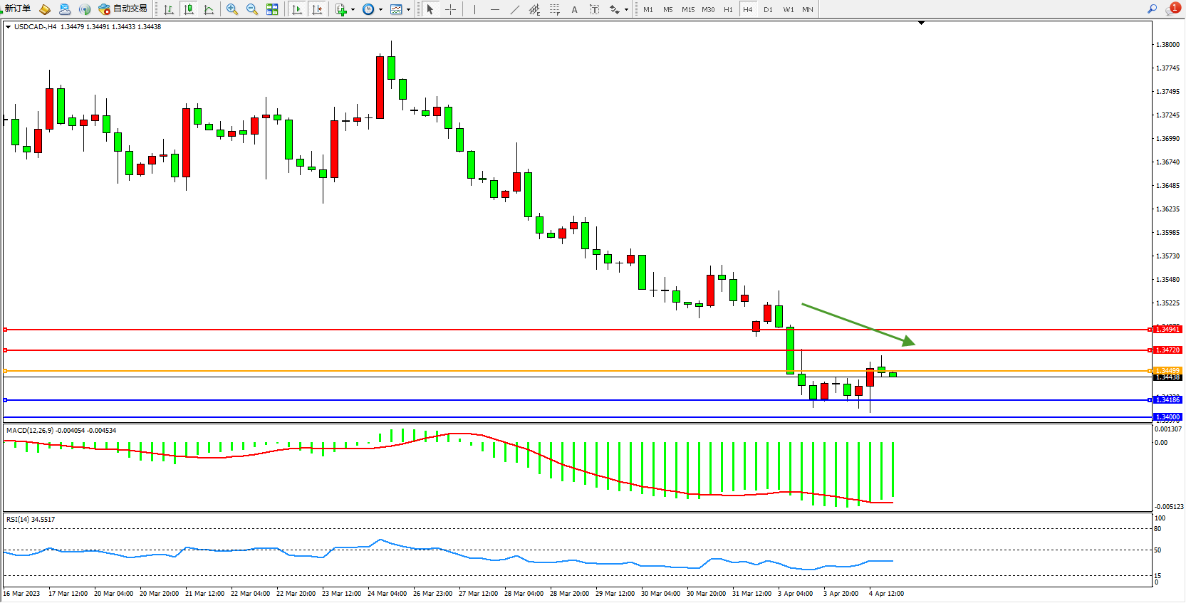 交易策略:1.34499下方看跌,目标1.34186 1.34000