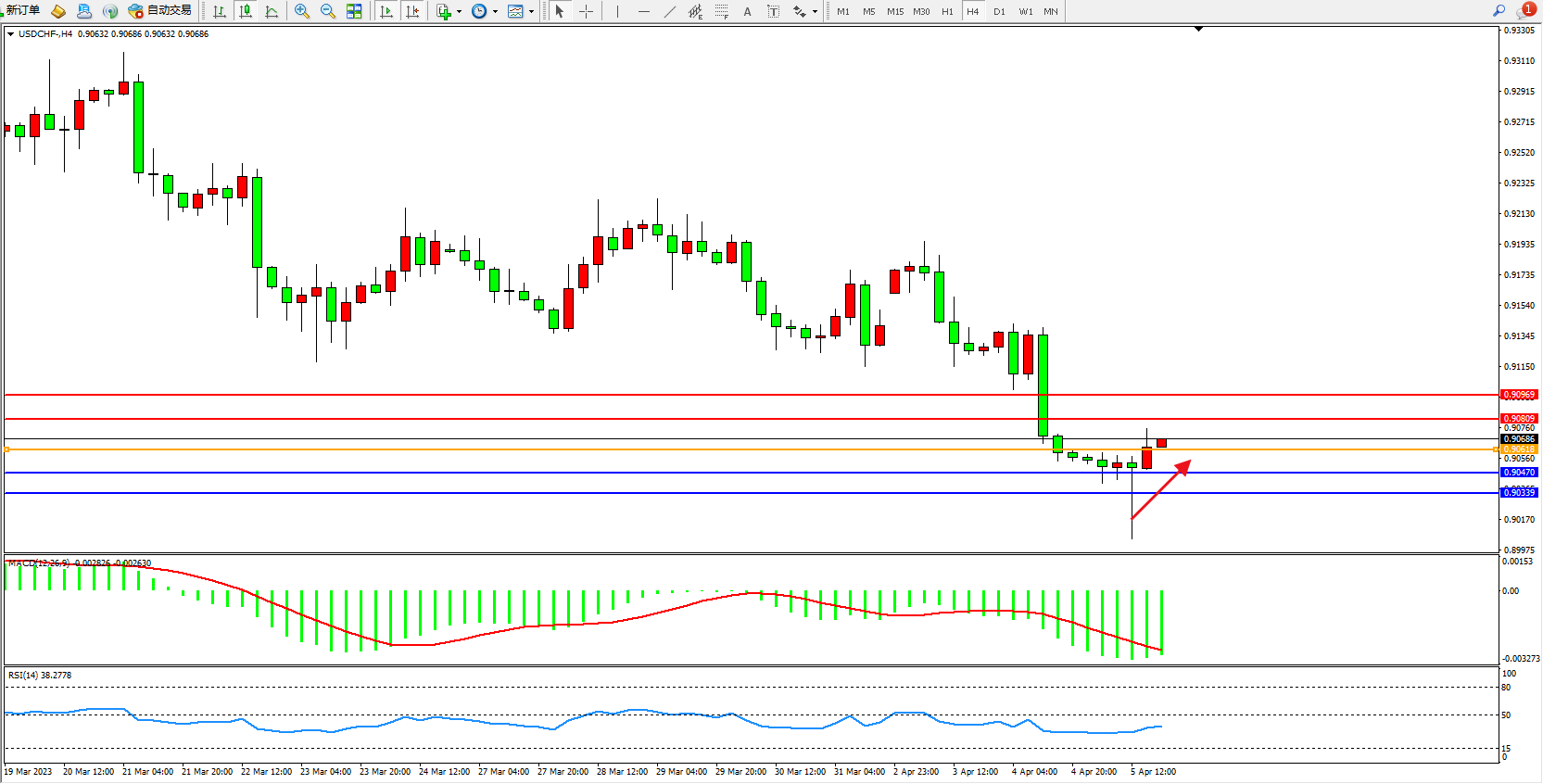 备选策略:0.90618下方看跌,目标0.90470  0.90339