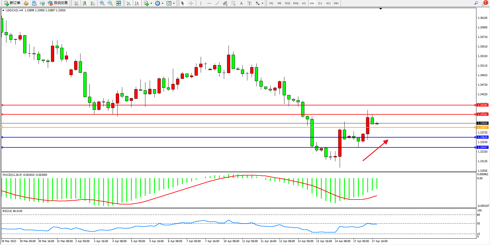 美元兑加元维持1.33920附近震荡,交易员押注美联储将在5月份将贷款利率再提高25个百分点,并将降息预期推迟到今年年底。加息促使美元走强,这使得以美元计价的石油对其他货币的持有者来说更加昂贵。