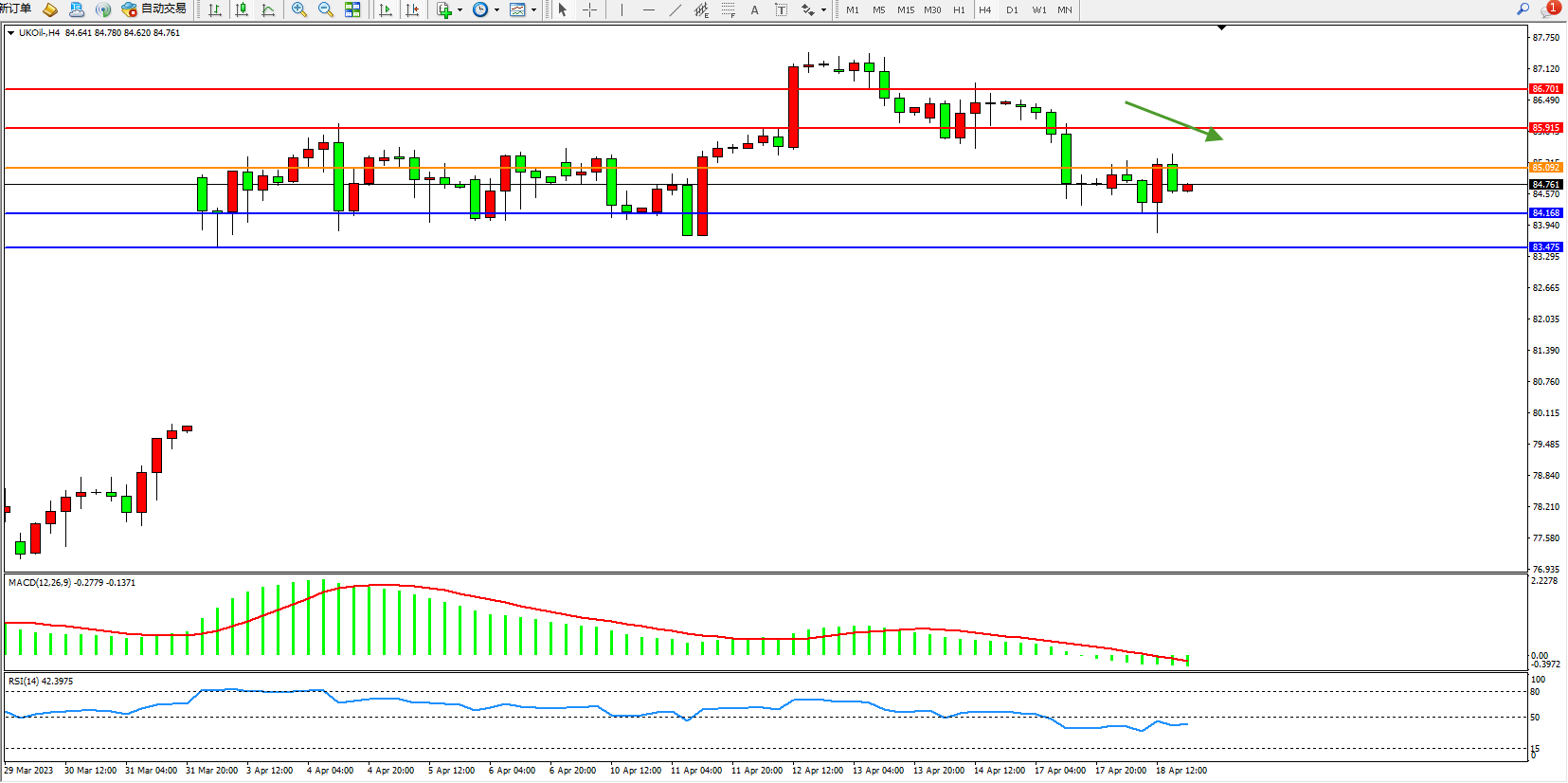 布油UKOil——4小时K线图显示: