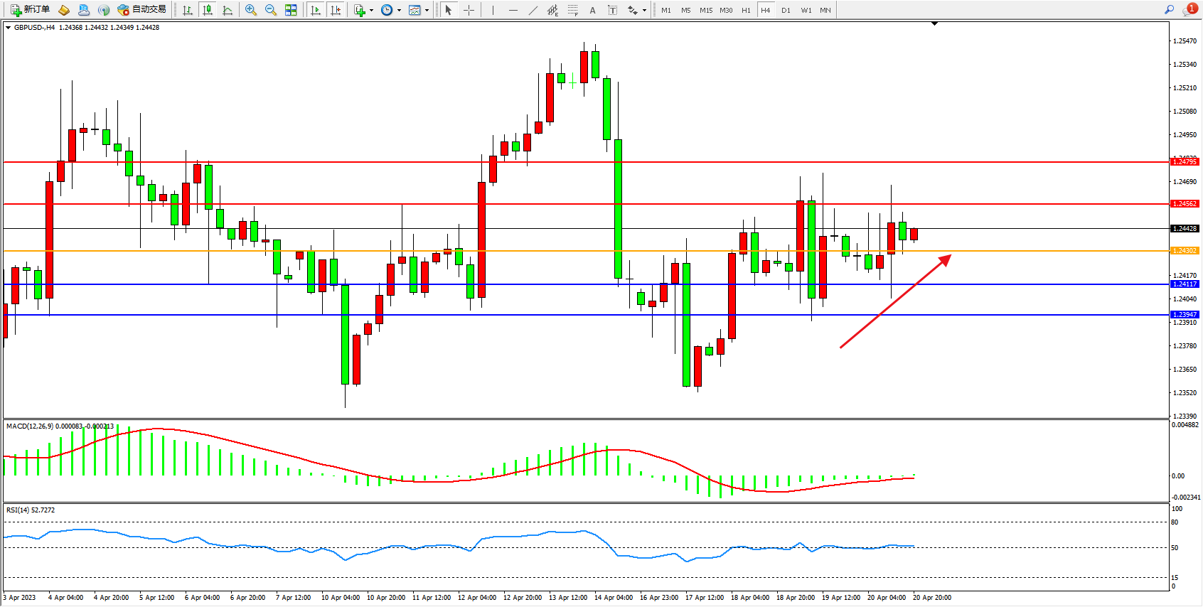 交易策略:1.24302上方看涨,目标1.24562 1.24795