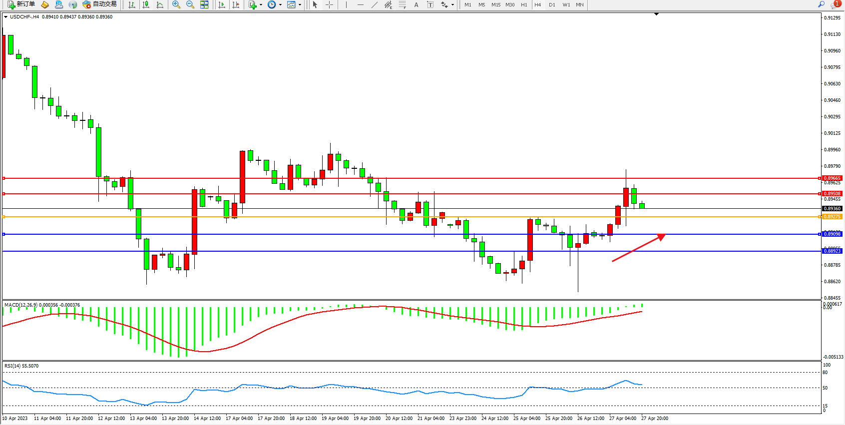 交易策略:0.89275上方看涨,目标0.89508  0.89665