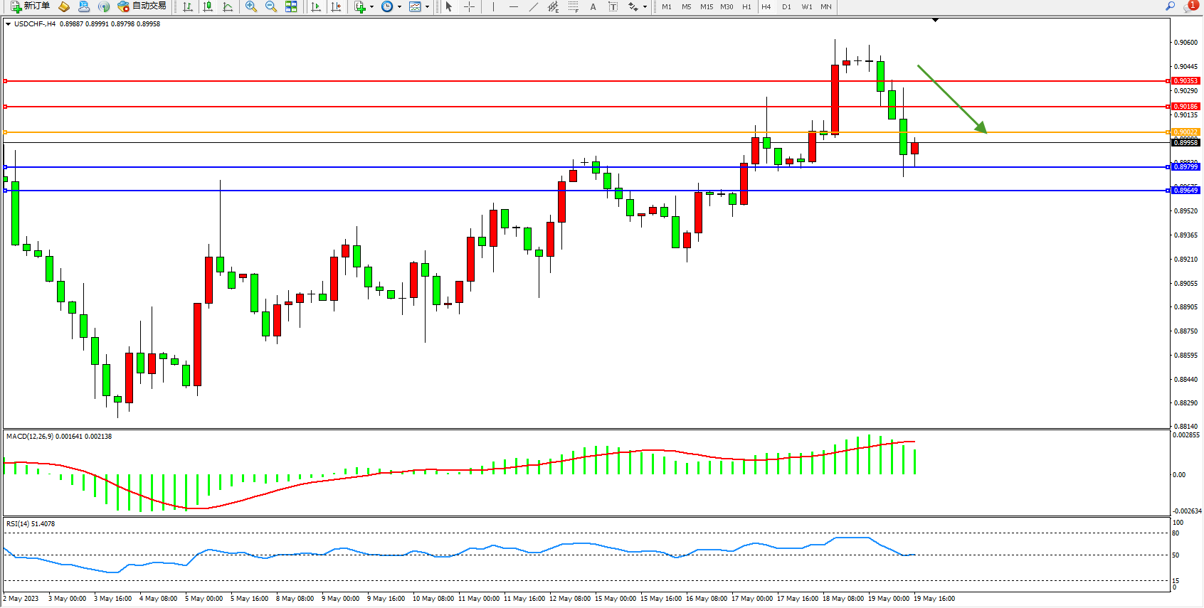 USDCHF:高位下移