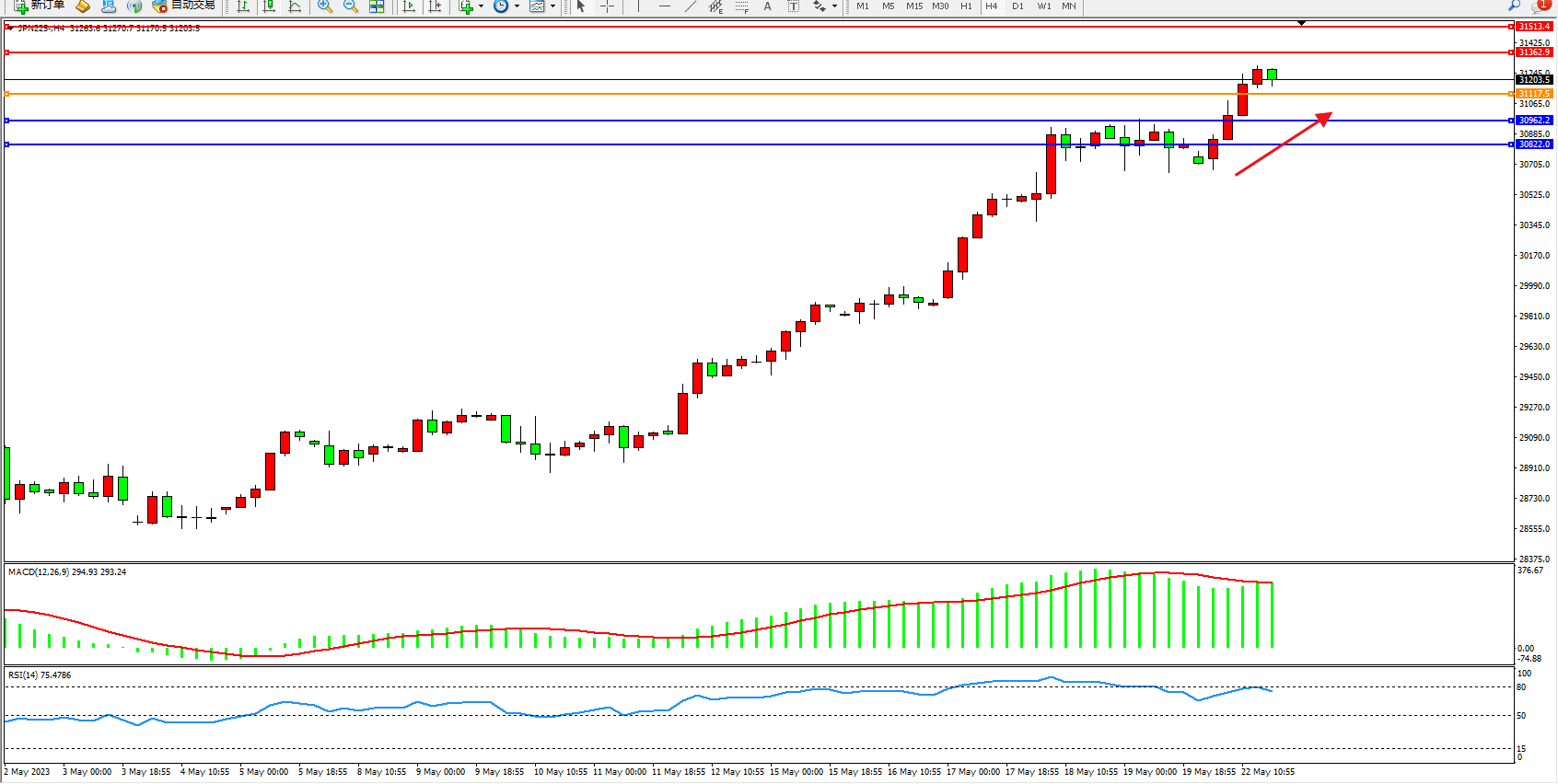 日经225指数5月22日(周一)收盘上涨265.15点,涨幅0.86%,报31073.50点。日本理化研究所RIKEN日前宣布与英特尔签署了合作谅解备忘录,以加强双方在AI、高性能计算、量子计算机等下一代计算领域的联合研究。另外,签署的合作备忘录中还包括,日本理化研究所将获得英特尔的芯片代工服务,以帮助原型芯片流片。