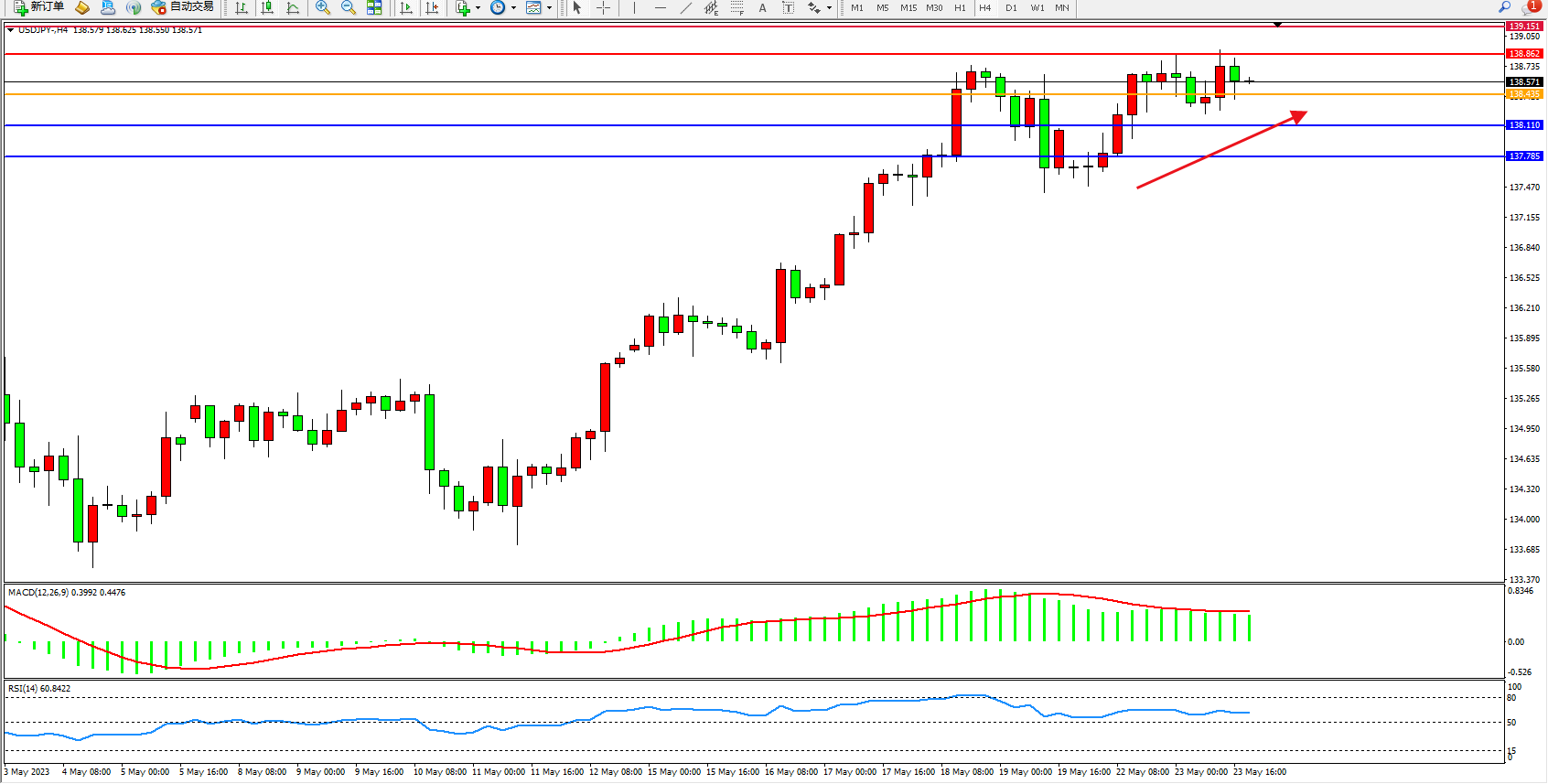 美元兑日圆维持138.571附近震荡,美元兑日在亚洲盘升至138.87的近六个月高点,目前交投于138.77附近,这反映出仍然鹰派的美联储和超鸽派的日本央行之间的鲜明对比。