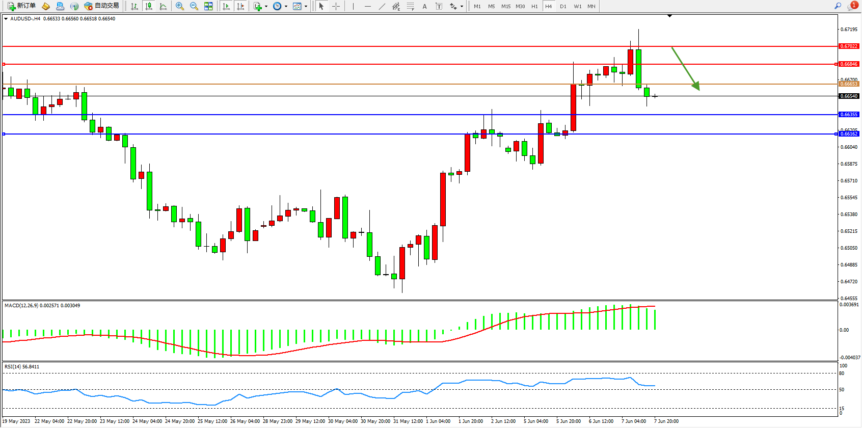 交易策略:0.66653下方看跌,目标0.66355 0.66162