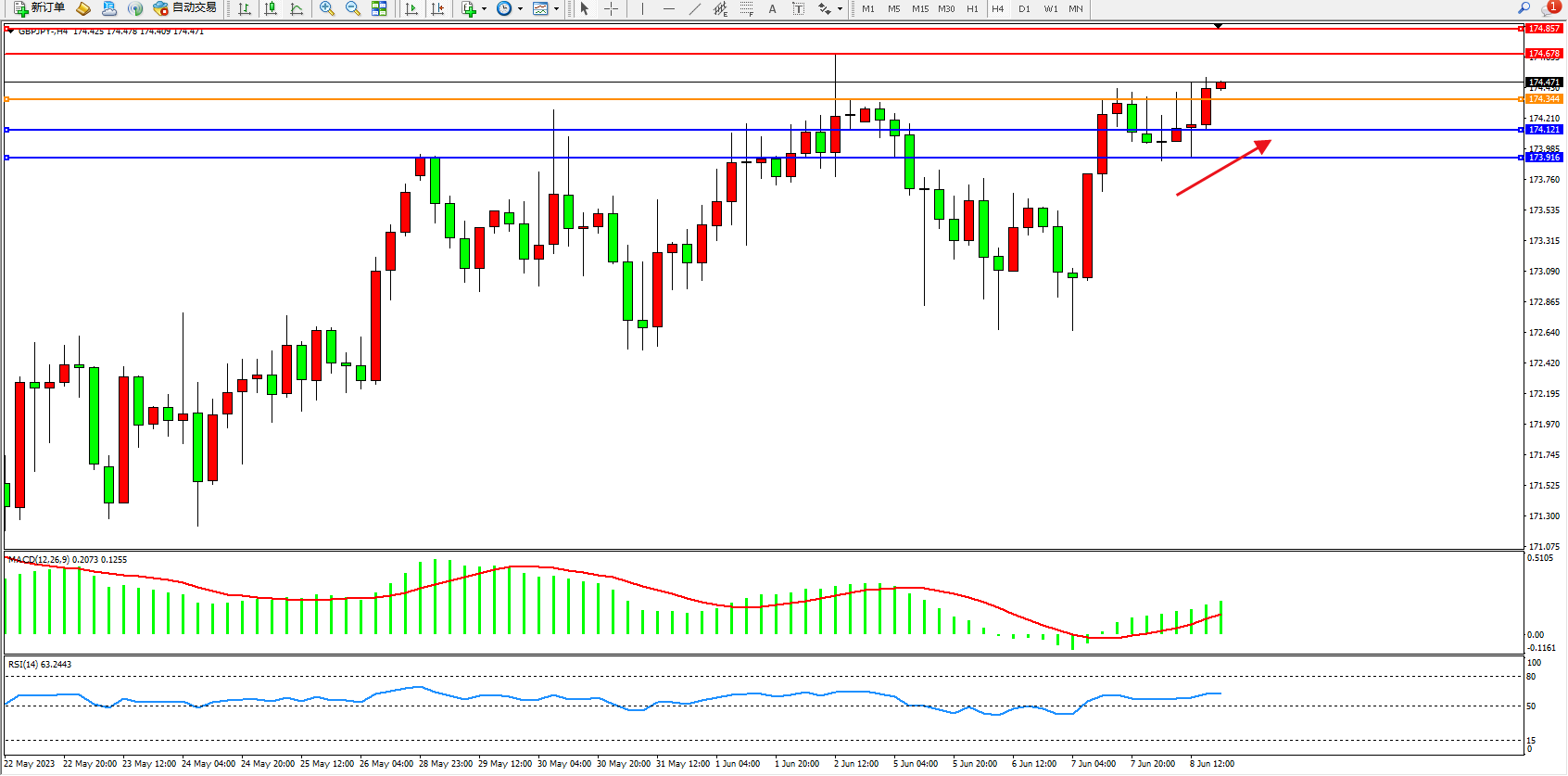 阻力位:174.678 174.857