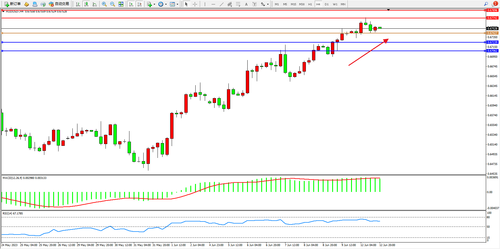 澳元兑美元维持0.67528附近震荡,澳洲联储主席洛威警告说,由于通胀率仍然过高,有可能会继续收紧政策。鹰派的政策声明推动澳元兑美元升至近一个月新高0.6723。