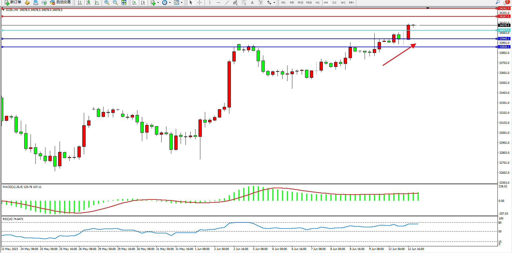 道琼斯指数6月12日(周一)收盘上涨190.47点,涨幅0.56%,报34067.25点;投资者在美国通胀数据和美联储利率决议公布前持谨慎心态。美国就业市场疲软迹象愈发明显,为美联储结束紧缩提供了更多依据。就业市场往往是最后知道经济衰退何时来临。