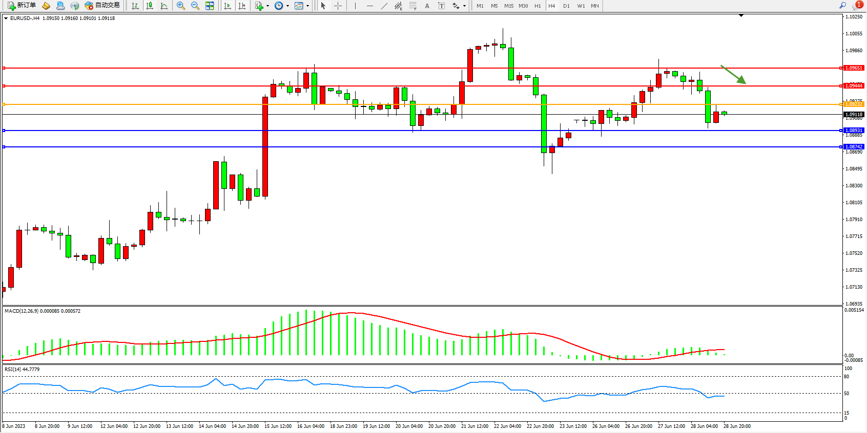 交易策略:1.09232下方看跌,目标1.08931 1.08742