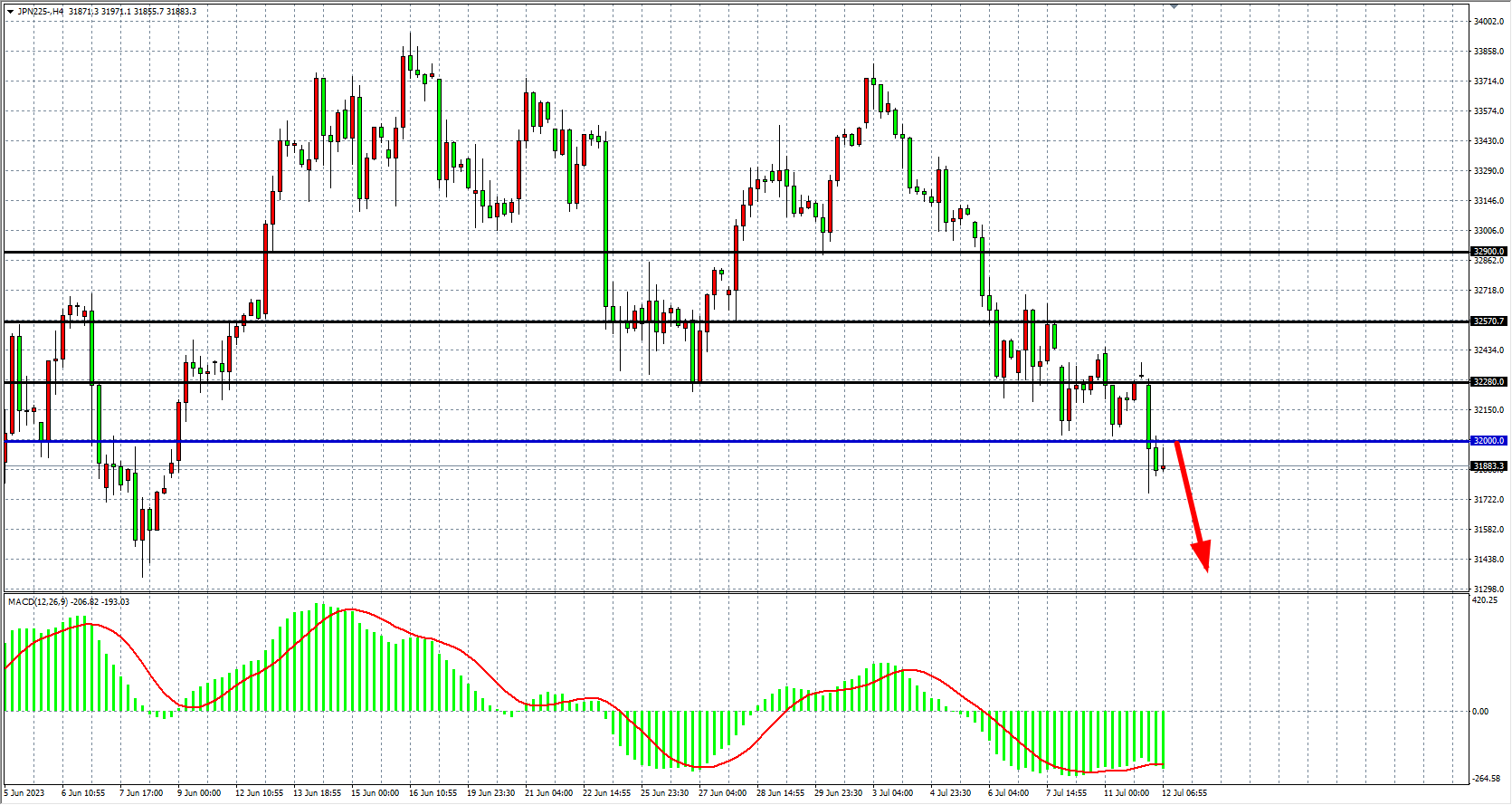 JPN225四小时图