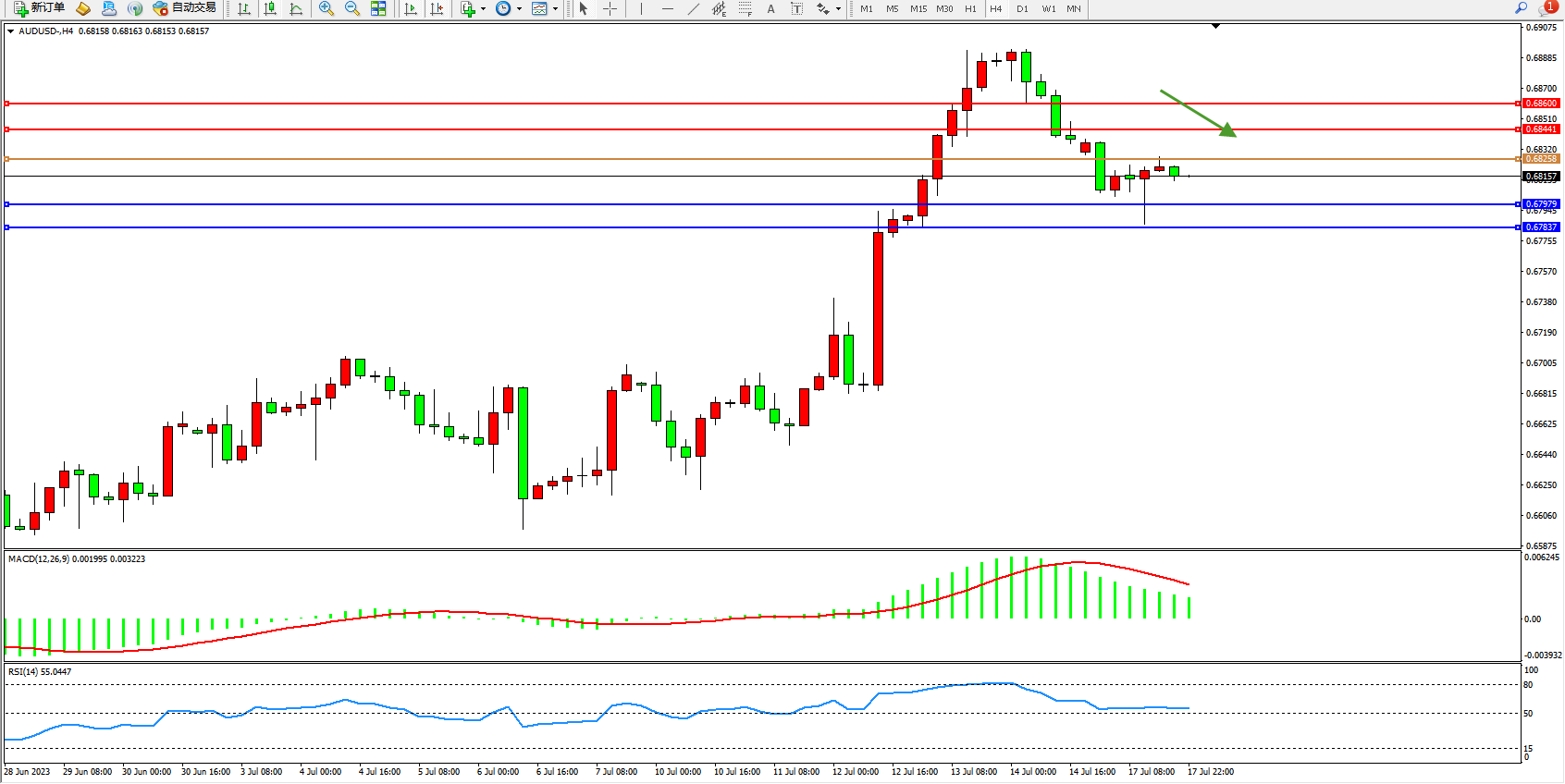 阻力位:0.68441  0.68600