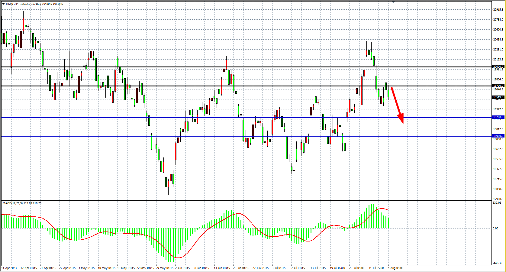 交易策略:19700 下方看跌,目标 19200 18900