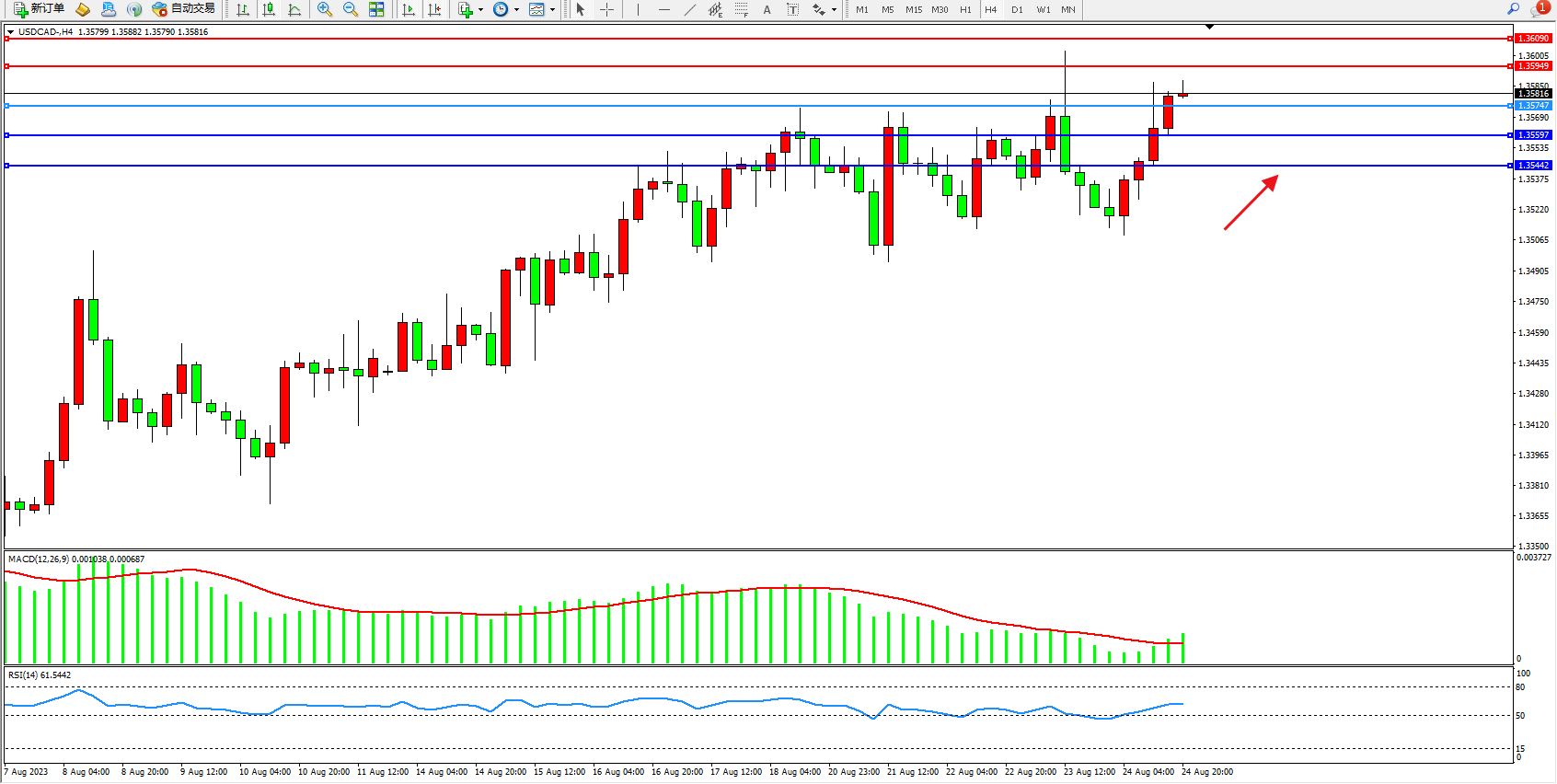 美元兑加元维持1.35816附近震荡,由于炼油厂意外停产以及大西洋盆地库存较低,供应担忧继续推动中间馏分油价格。沙特可能会连续第3个月延长其100万桶自愿减产至10月份。最初的减产措施似乎已经奏效了,油价在过去一个月上涨了约15%,至86美元/桶左右。