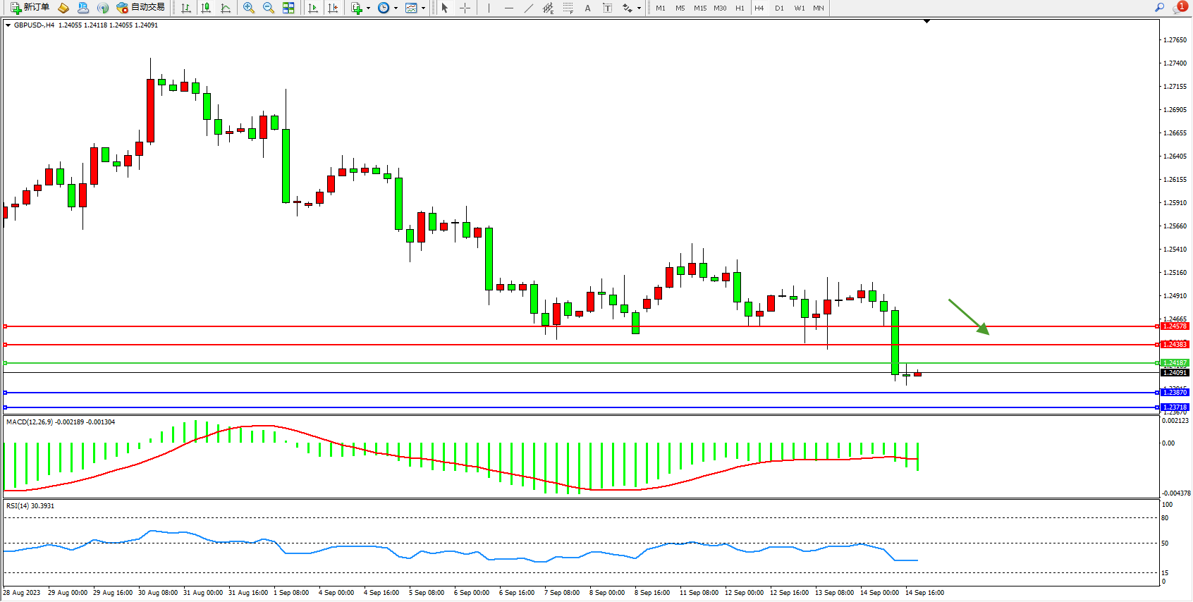 交易策略:1.24187下方看跌,目标1.23870  1.23718