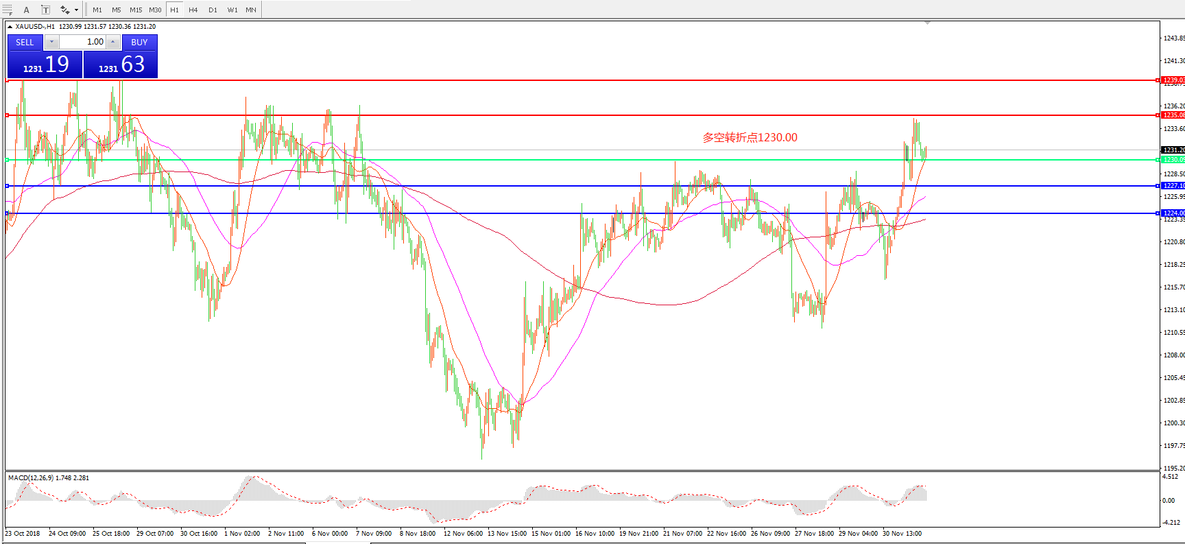 交易策略:在1230之上看涨,目标1235.00 1239.00