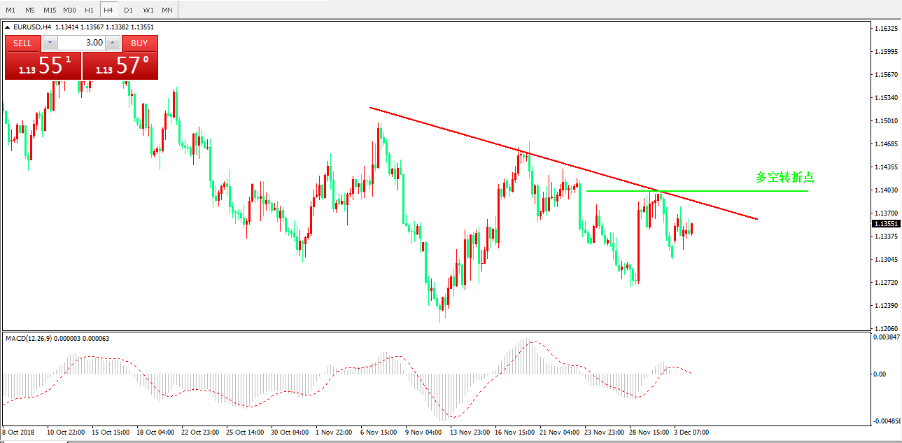 基本面简析:法国民众抗议提高燃油税的示威愈演愈烈,引发法国自2005年以来最严重的城市骚乱。欧元区11月制造业PMI连续第三个月下滑,从10月的52.0降至51.8,这是自2016年8月以来的最低水平,进一步证明欧元区经济增长已过高峰。