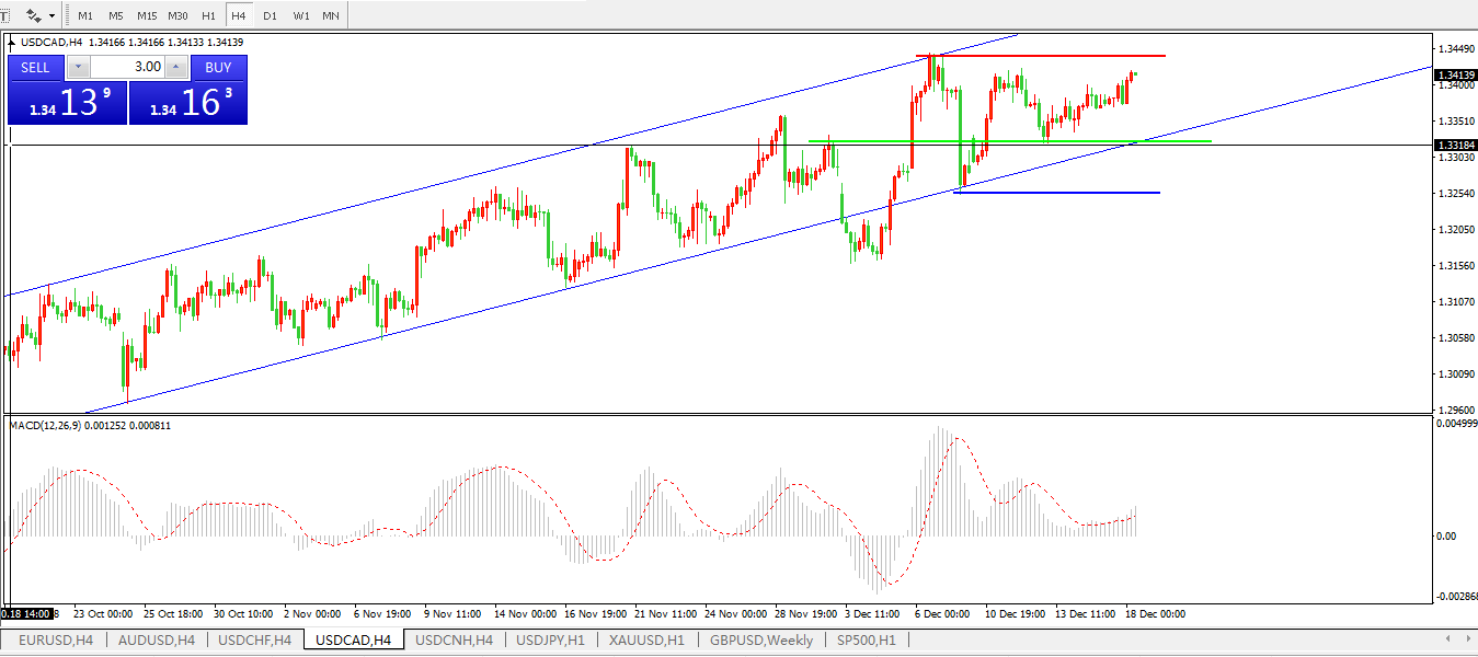 美元兑加元USDCAD4小时图