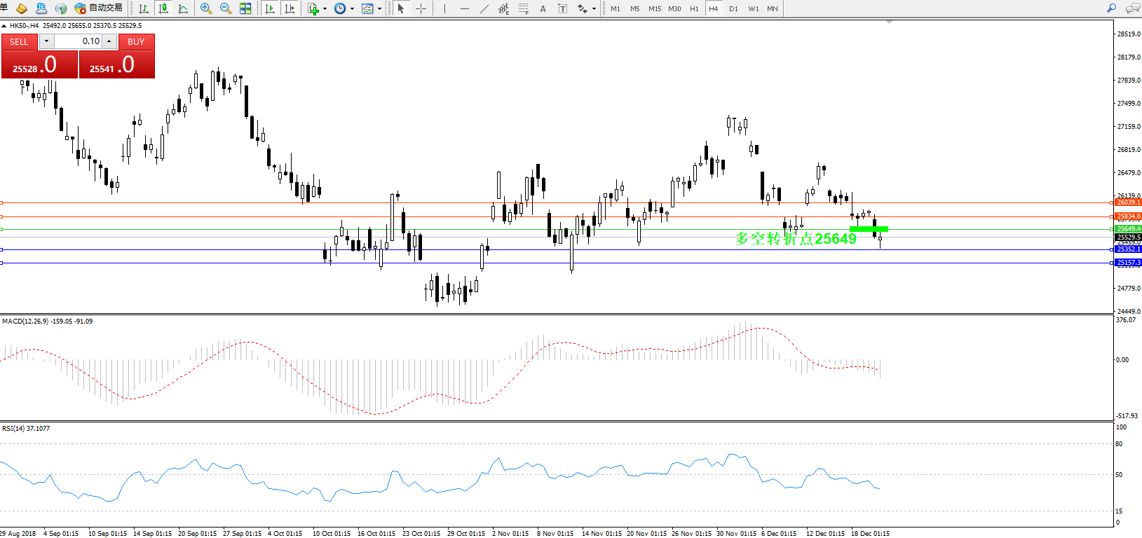 美联储坚持明年持续收紧政策的前景,并预测2019年旳升息次数较少,打击了对于该行在全球增长疲弱背景下将采取温和立场的希望,引发全球股市遭抛,恒指受其影响,直线下挫,香港恒生指数收盘跌0.9%至25623.53点。