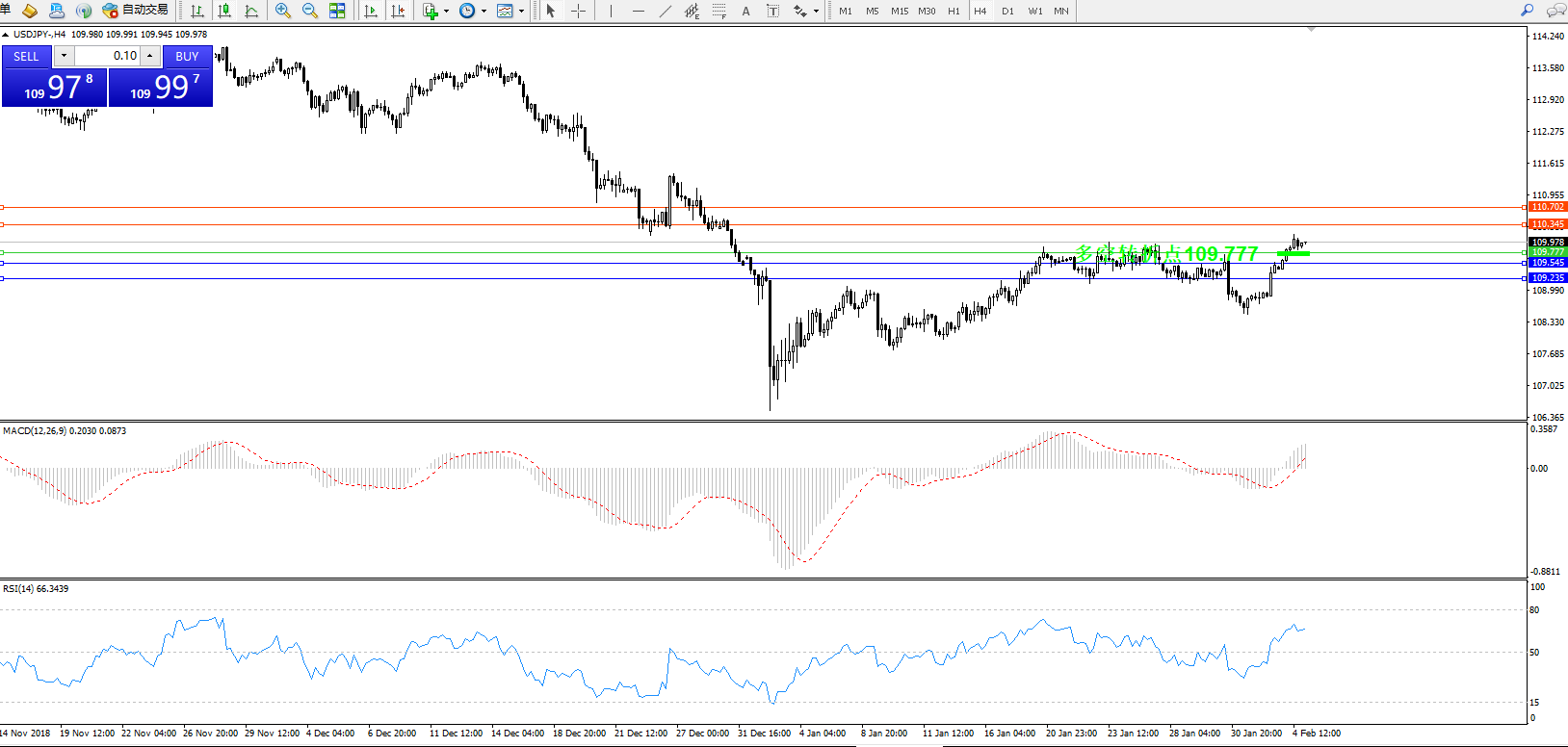 交易策略:109.777上方看涨,目标110.345、110.702